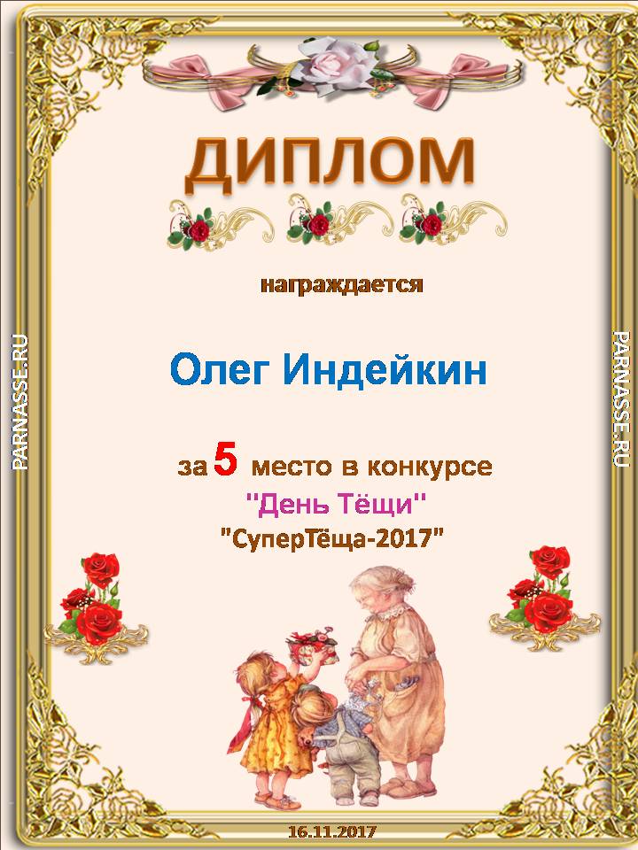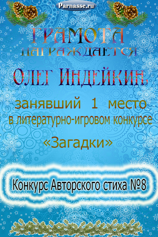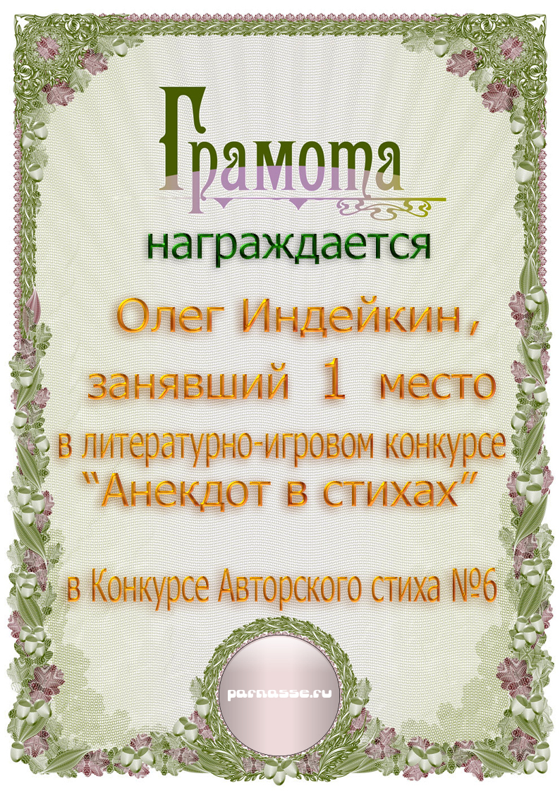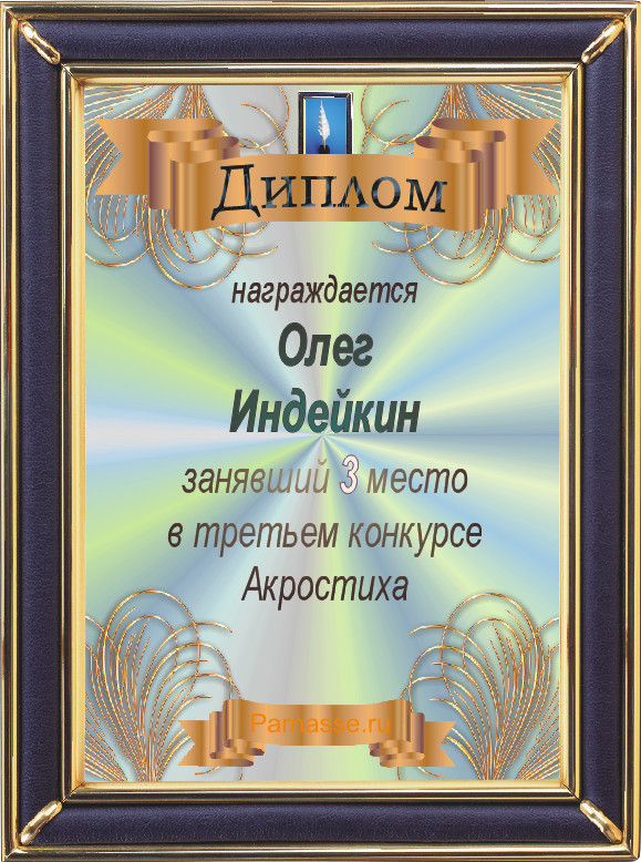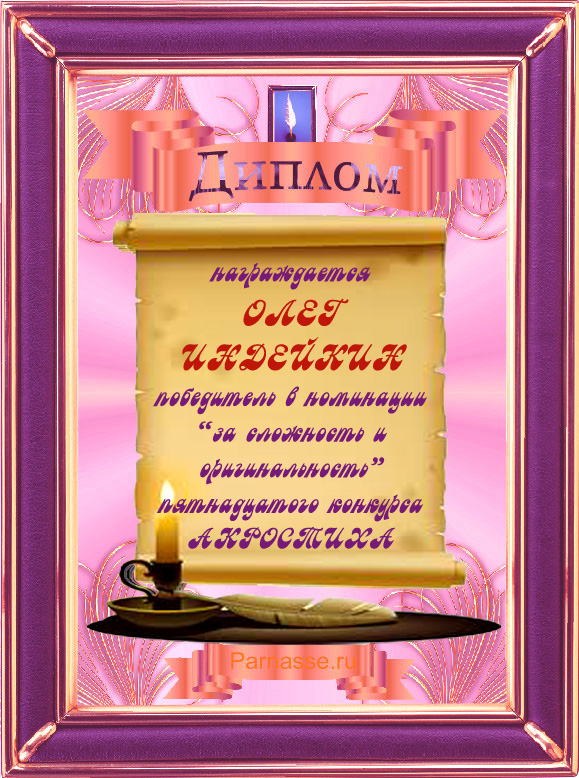 Диплом победителю в конкурсах Акростиха в честь пятилетия конкурса Акростиха!