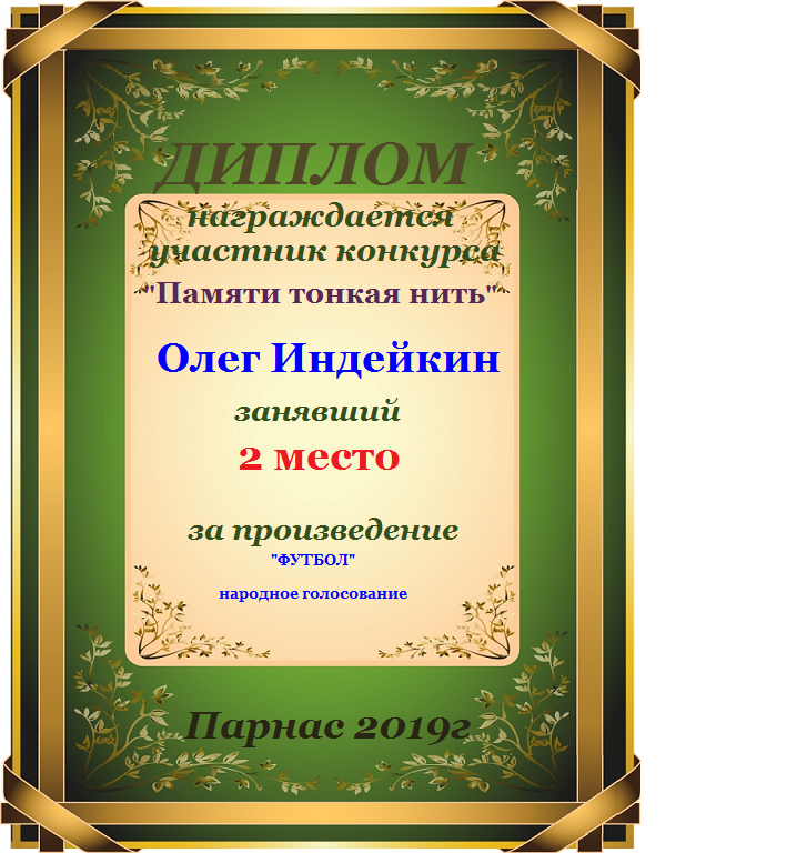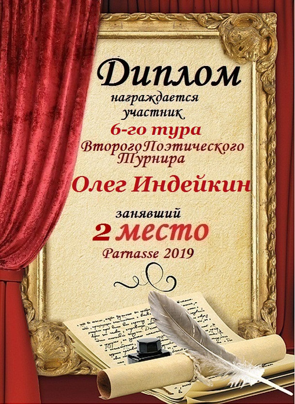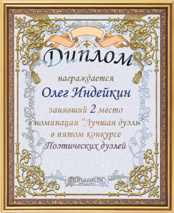 Диплом за второе место в номинации "лучшая дуэль" в пятом конкурсе поэтических дуэлей
