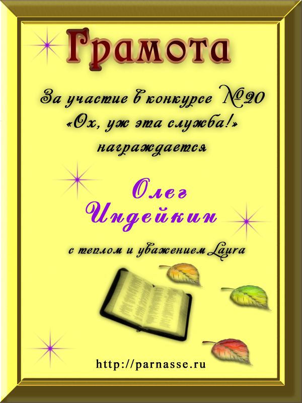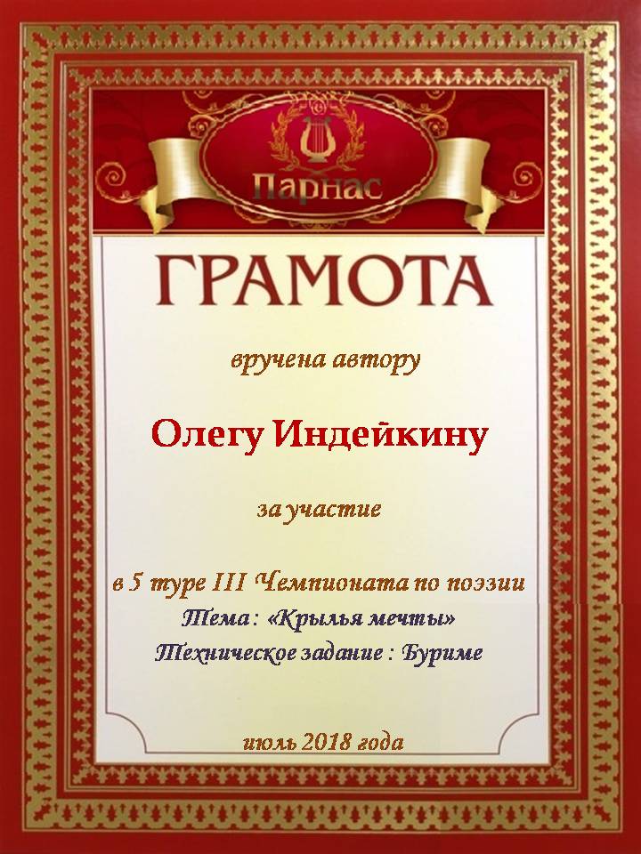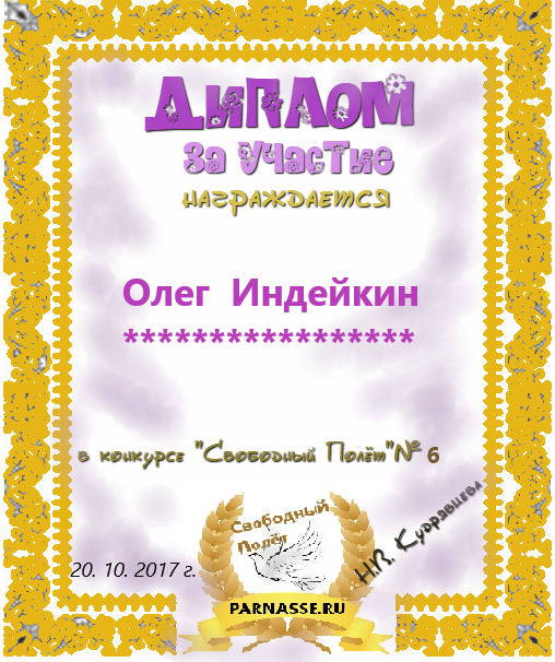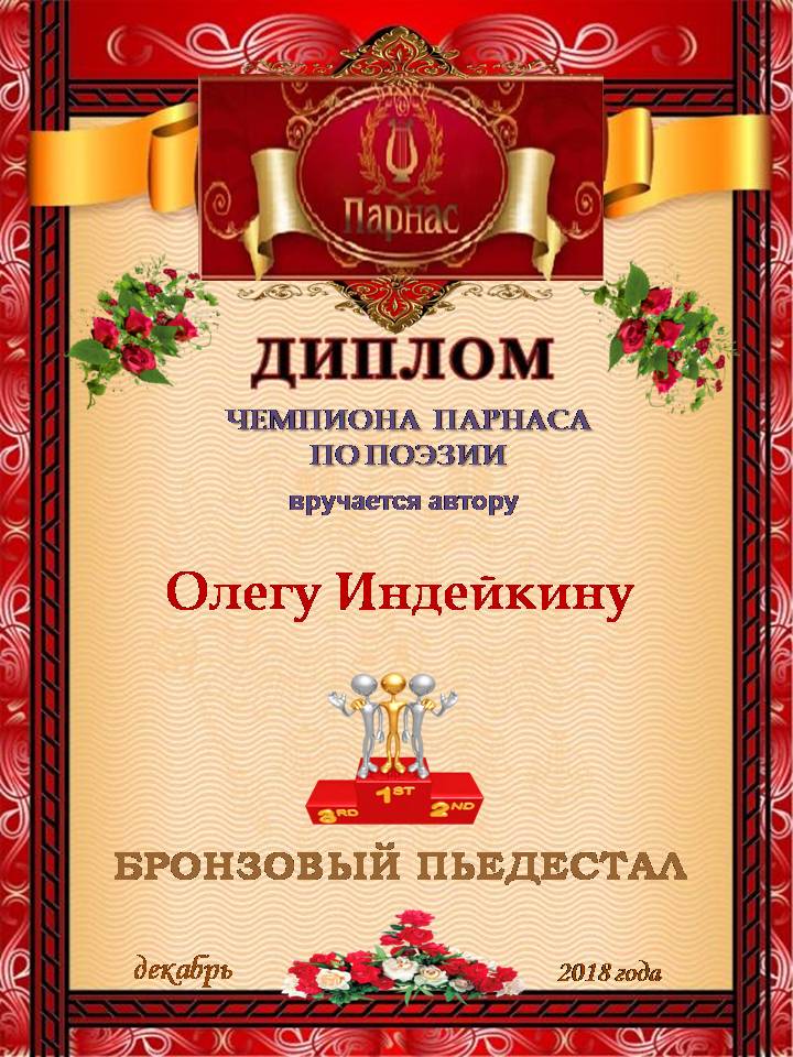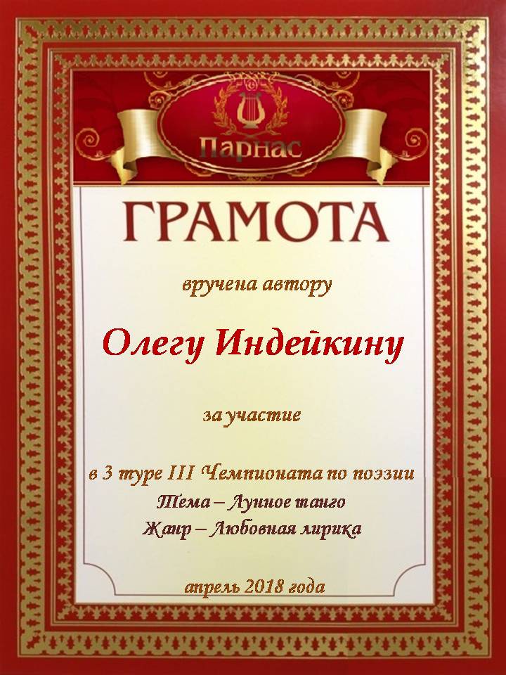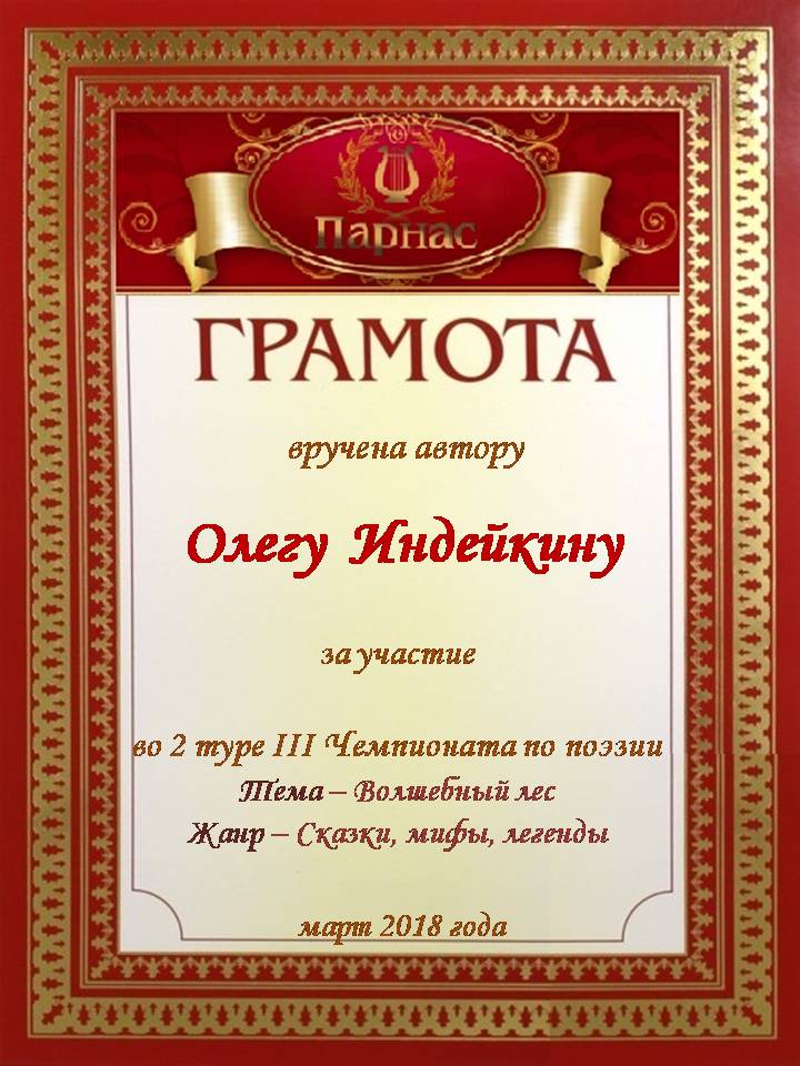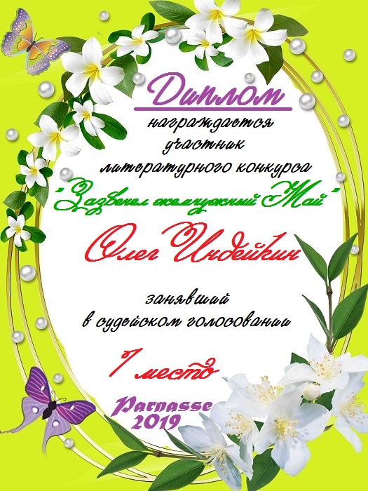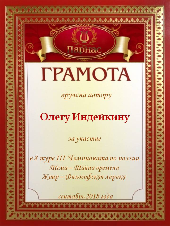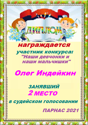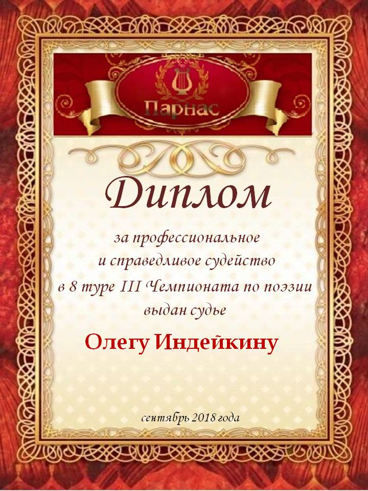Уважаемый Олег!Спасибо Вам большое за высокопрофессиональное, объективное судейство конкурсов на Парнасе!