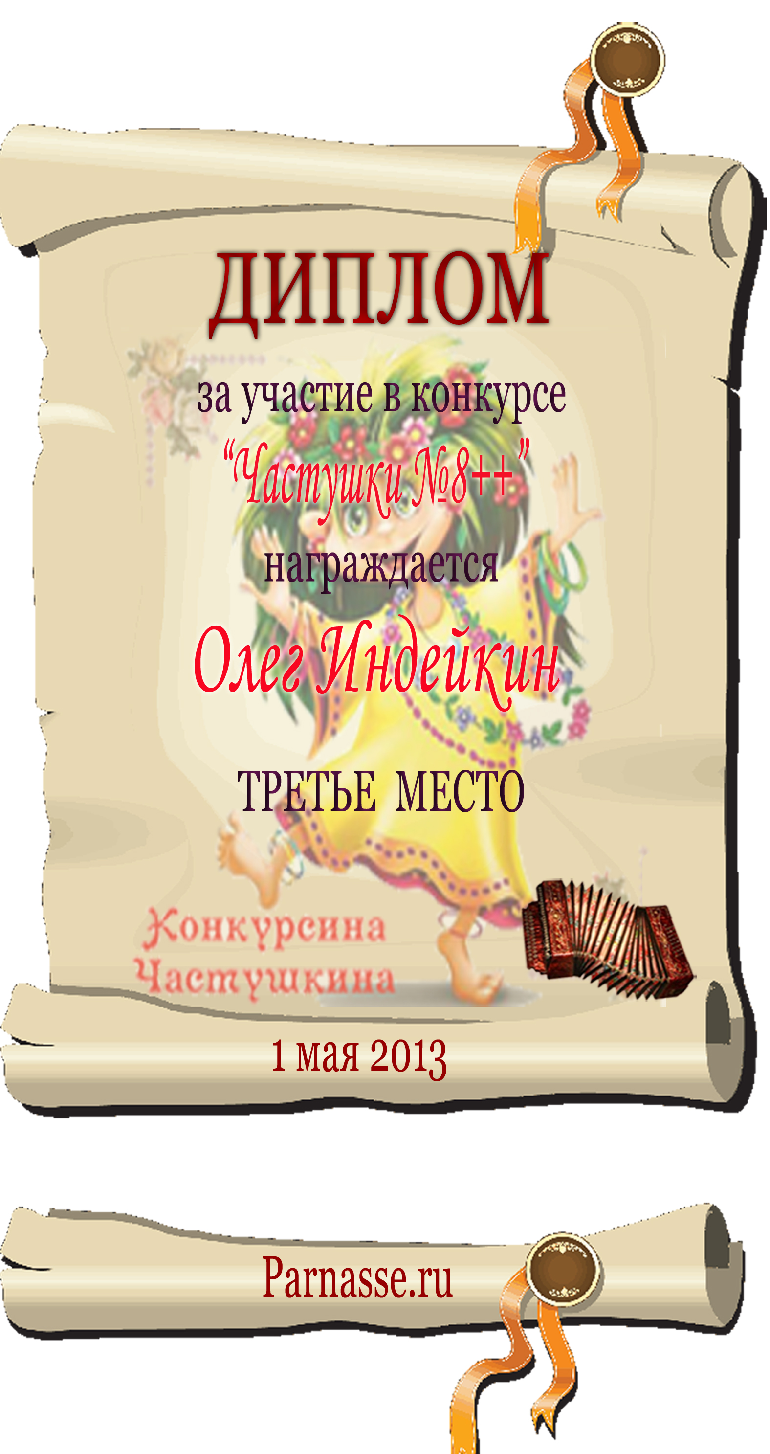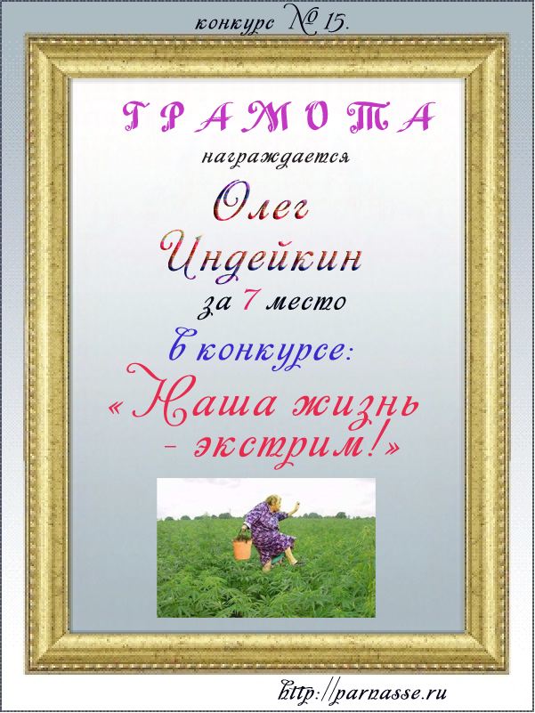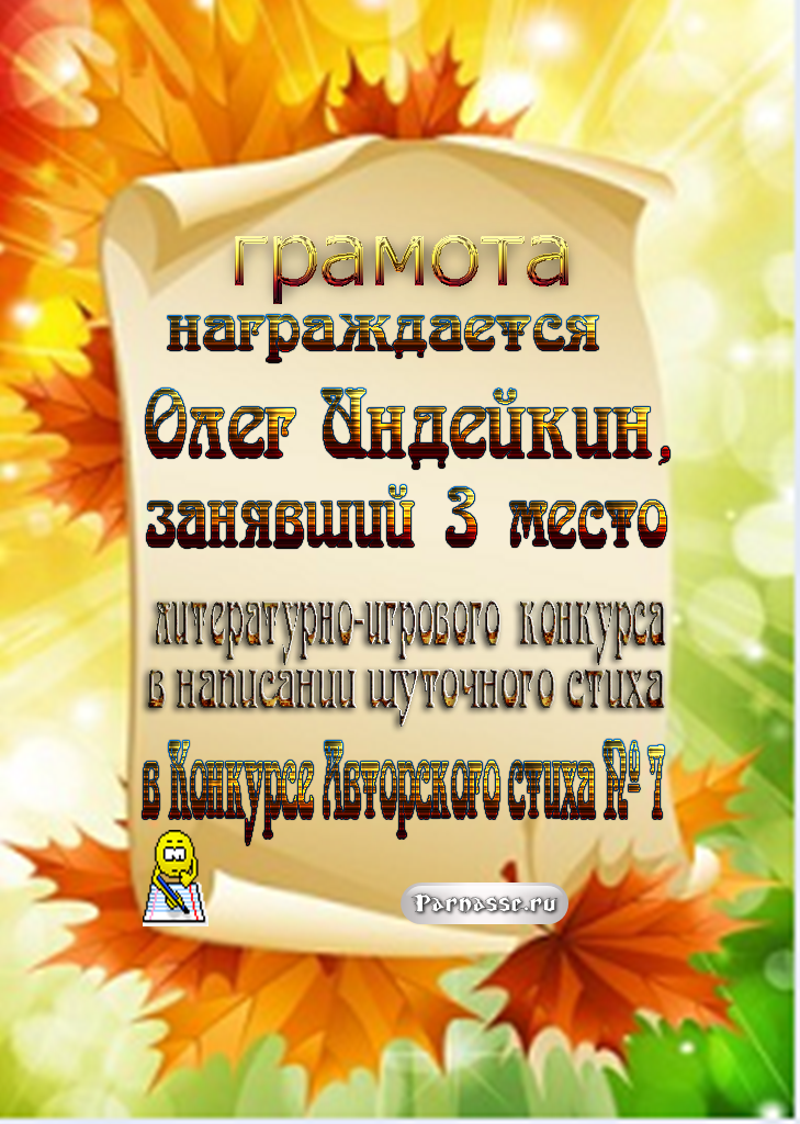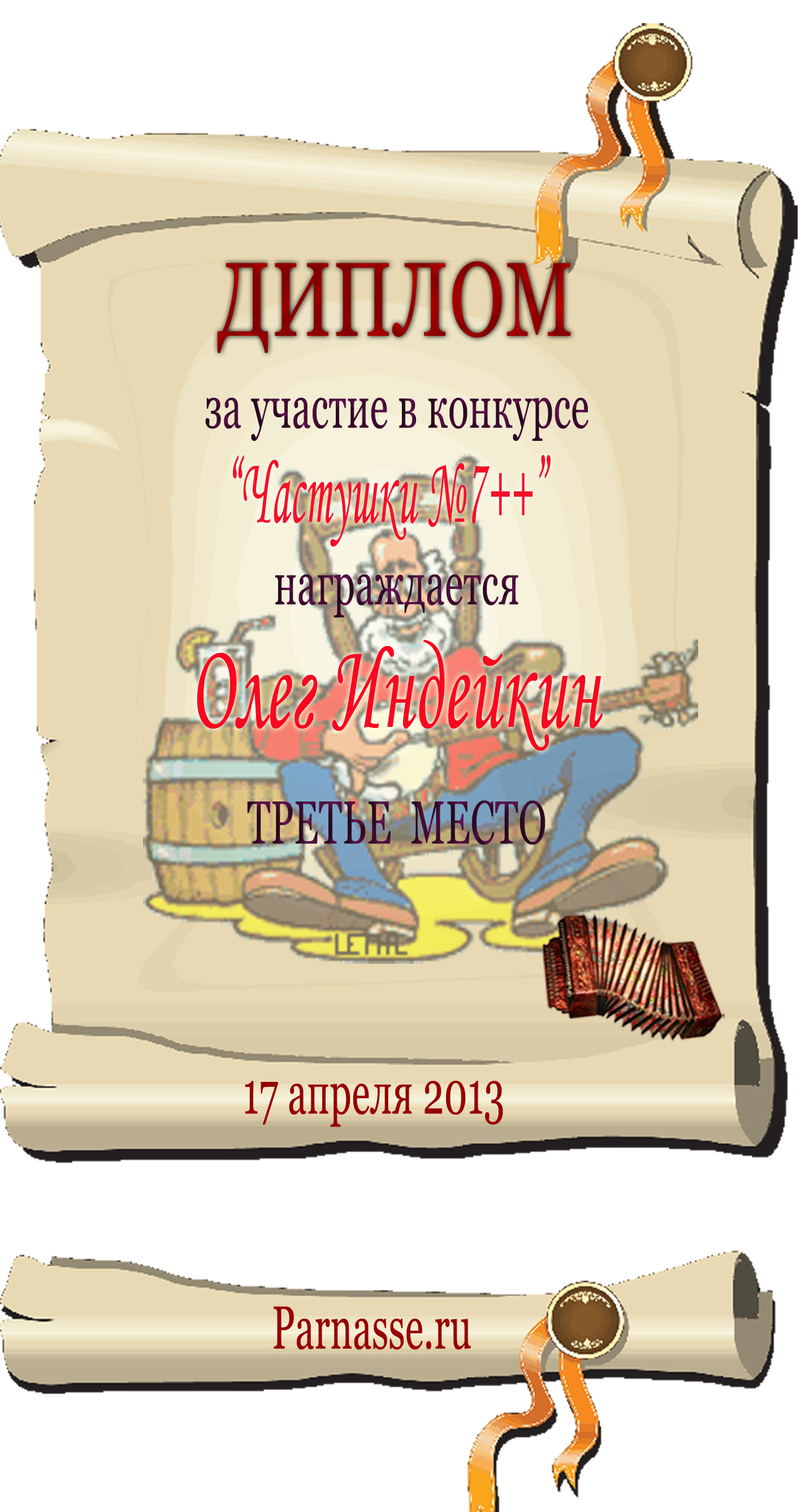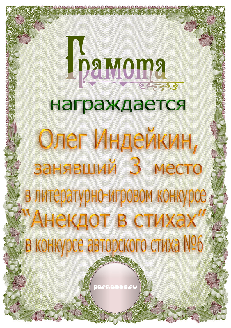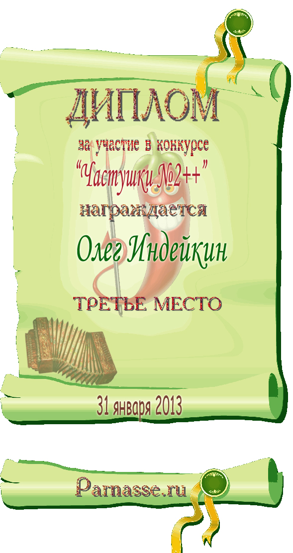 ОЛЕГ, ПОЗДРАВЛЯЮ ВАС С ПОЧЕТНЫМ 5 МЕСТОМ В КОНКУРСЕ ЧАСТУШЕК №9++