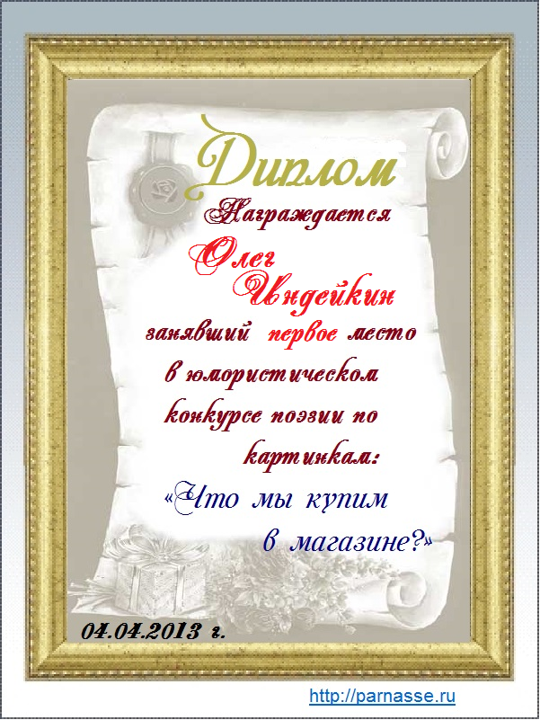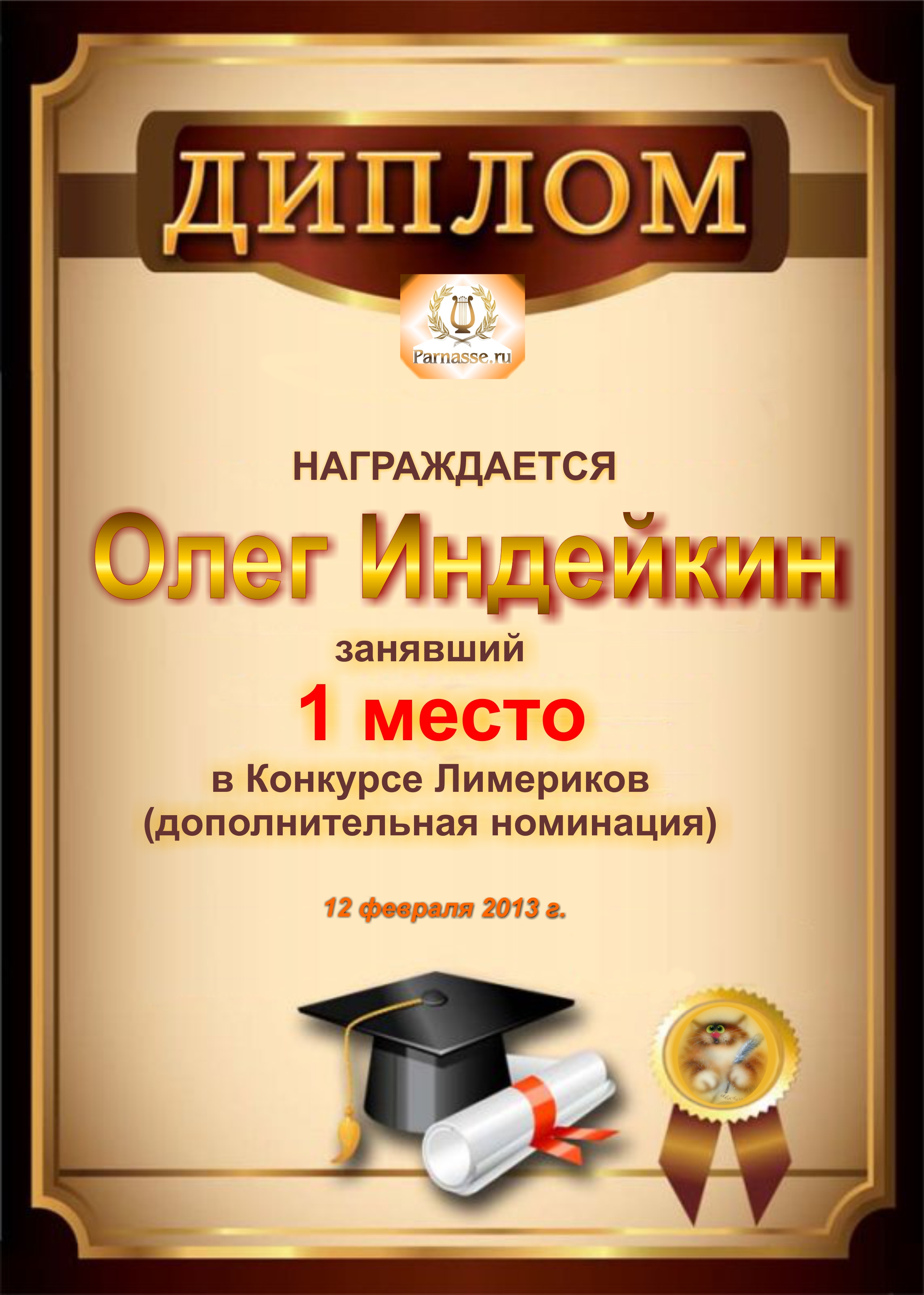 Диплом за победу в дополнительной номинации конкурса лимериков № 30 (11.02.2013 г.)