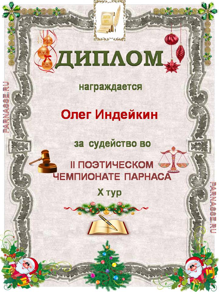 ДИПЛОМ ЗА ПРОФЕССИОНАЛЬНОЕ СУДЕЙСТВО ДЕСЯТОГО КОНКУРСА ПОЭТИЧЕСКИХ ДУЭЛЕЙ