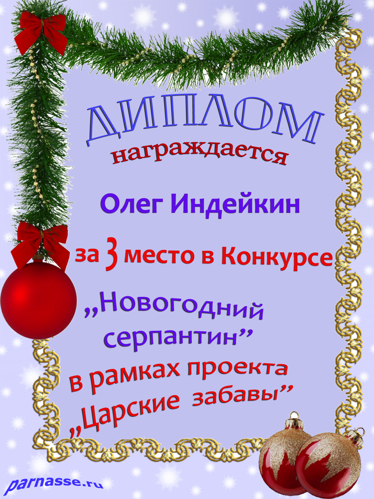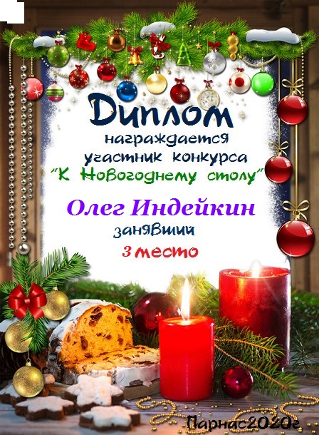 Третье место по итогам конкурса " Не стоит грустить в декабре", судейское голосование. Поздравляем с прекрасной победой!
