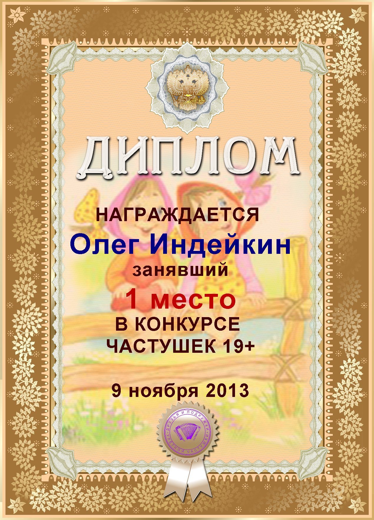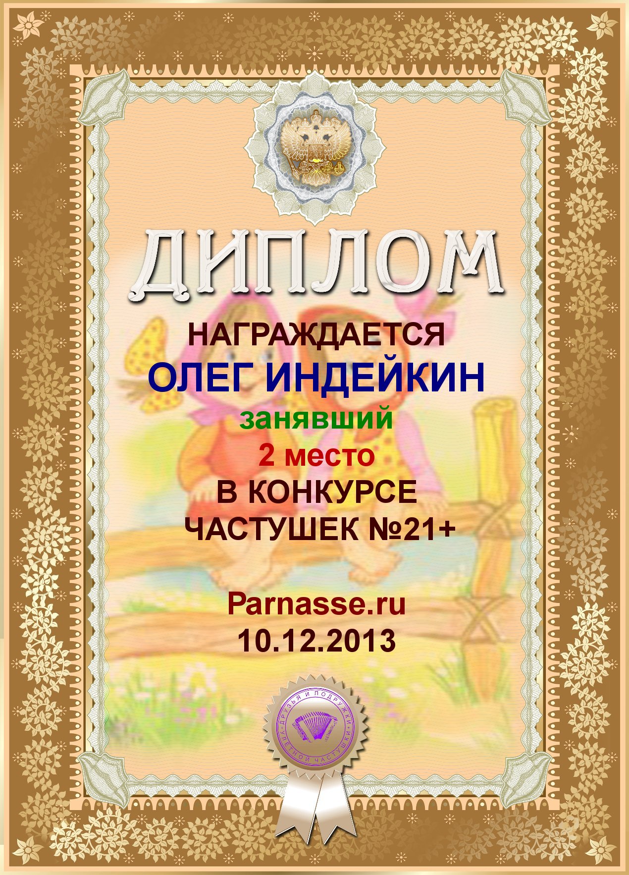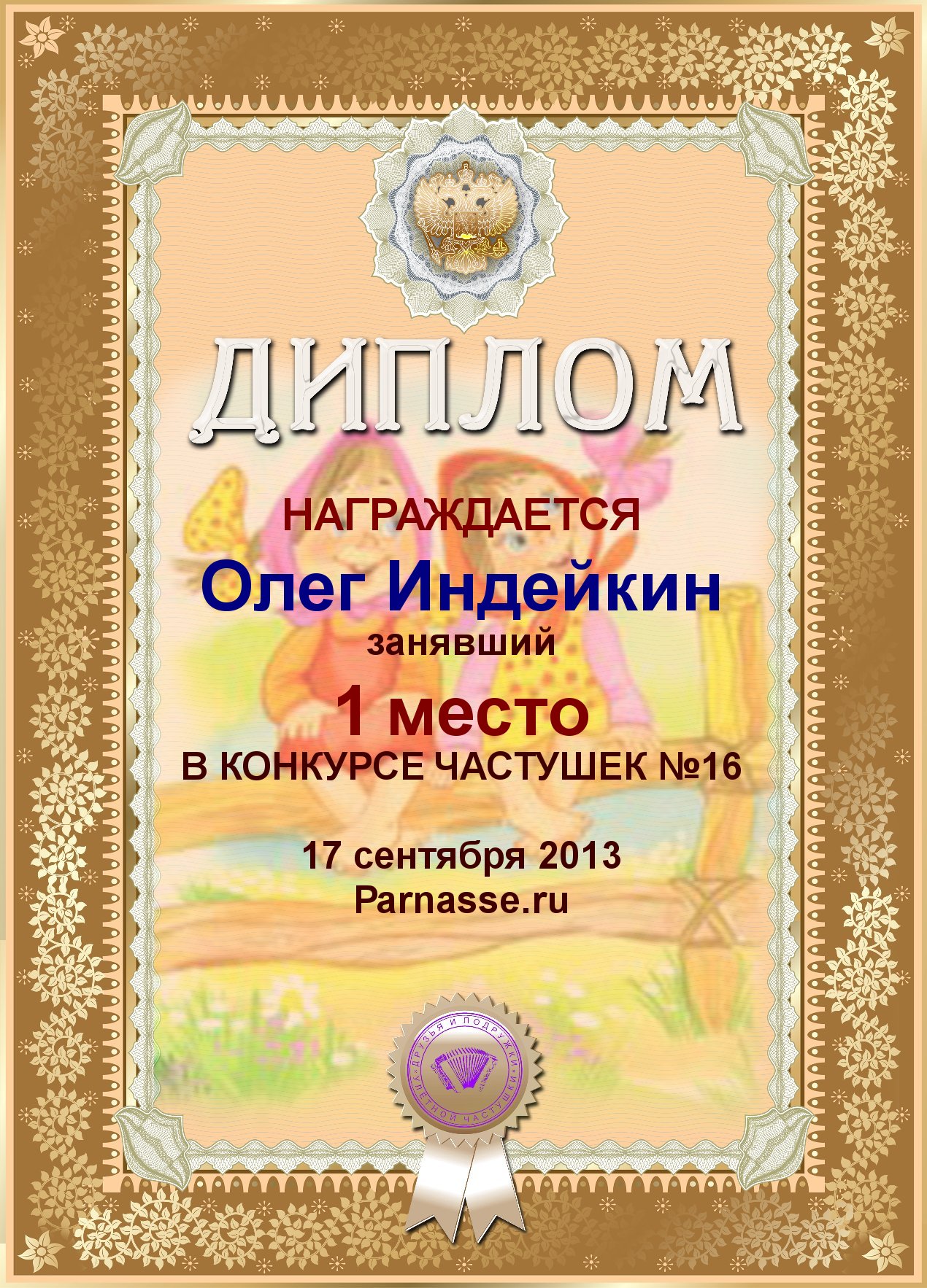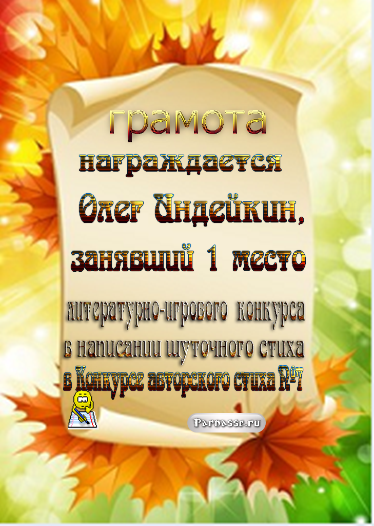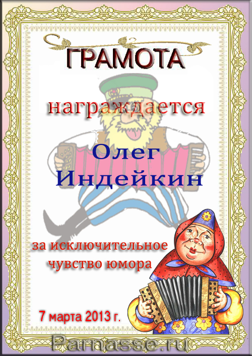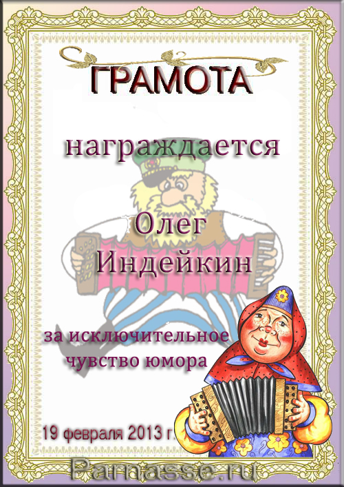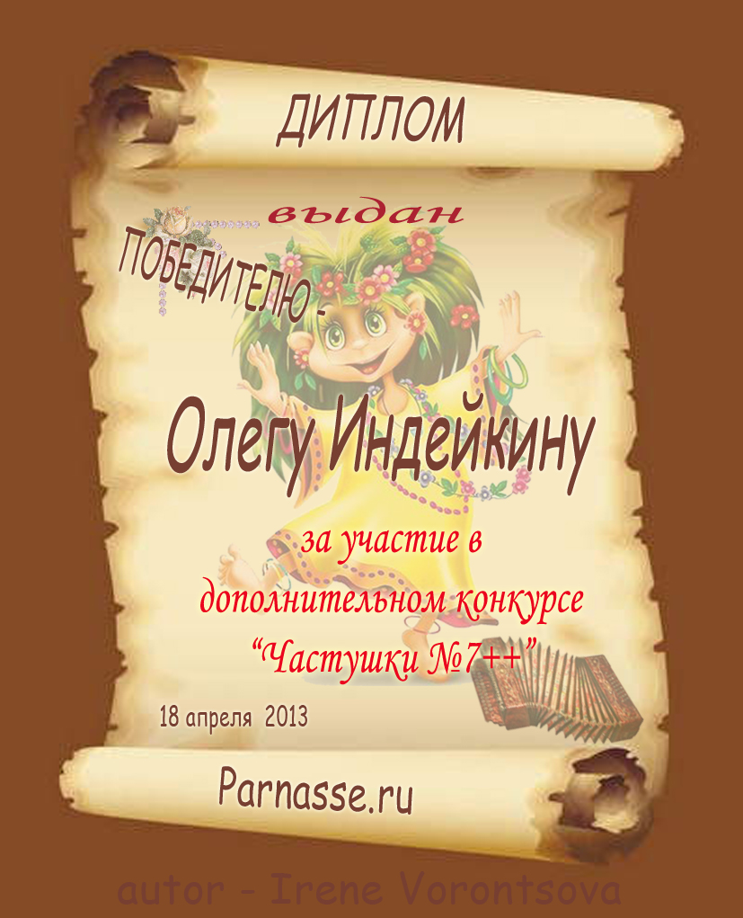ОЛЕГ, ПОЗДРАВЛЯЮ ВАС С ПОБЕДОЙ В ДОПОЛНИТЕЛЬНОЙ НОМИНАЦИИ КОНКУРСА ЧАСТУШЕК №9++