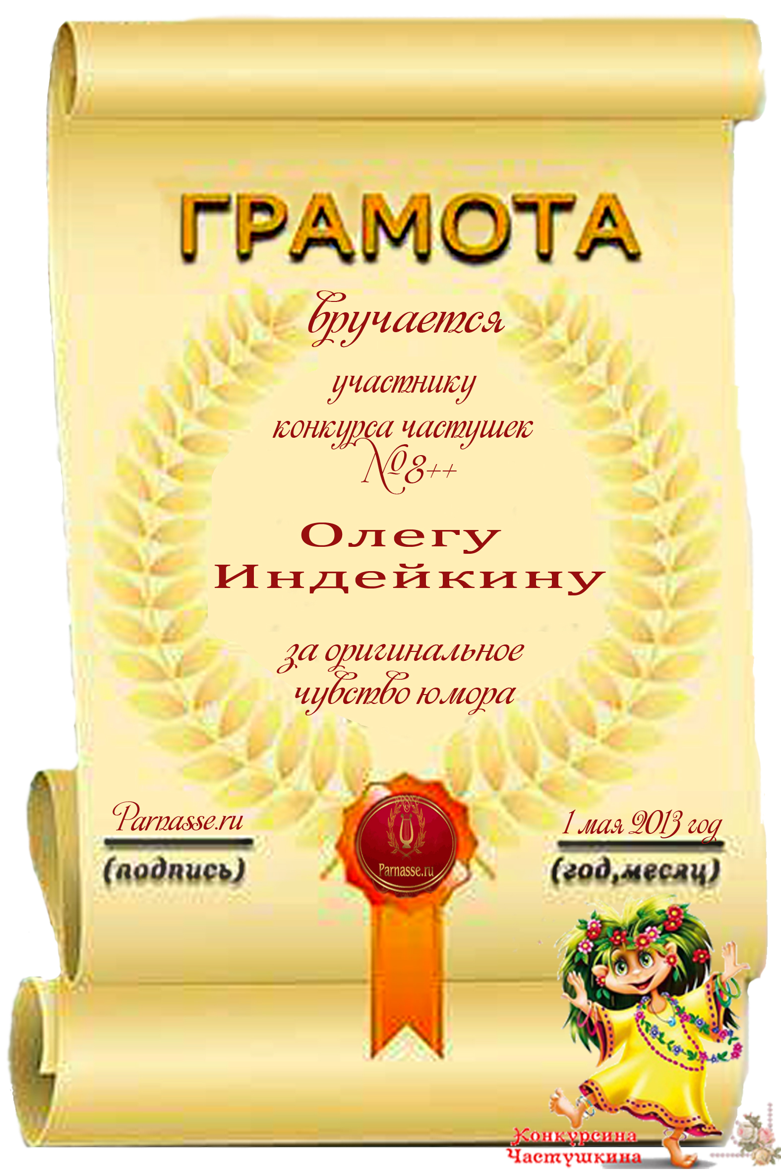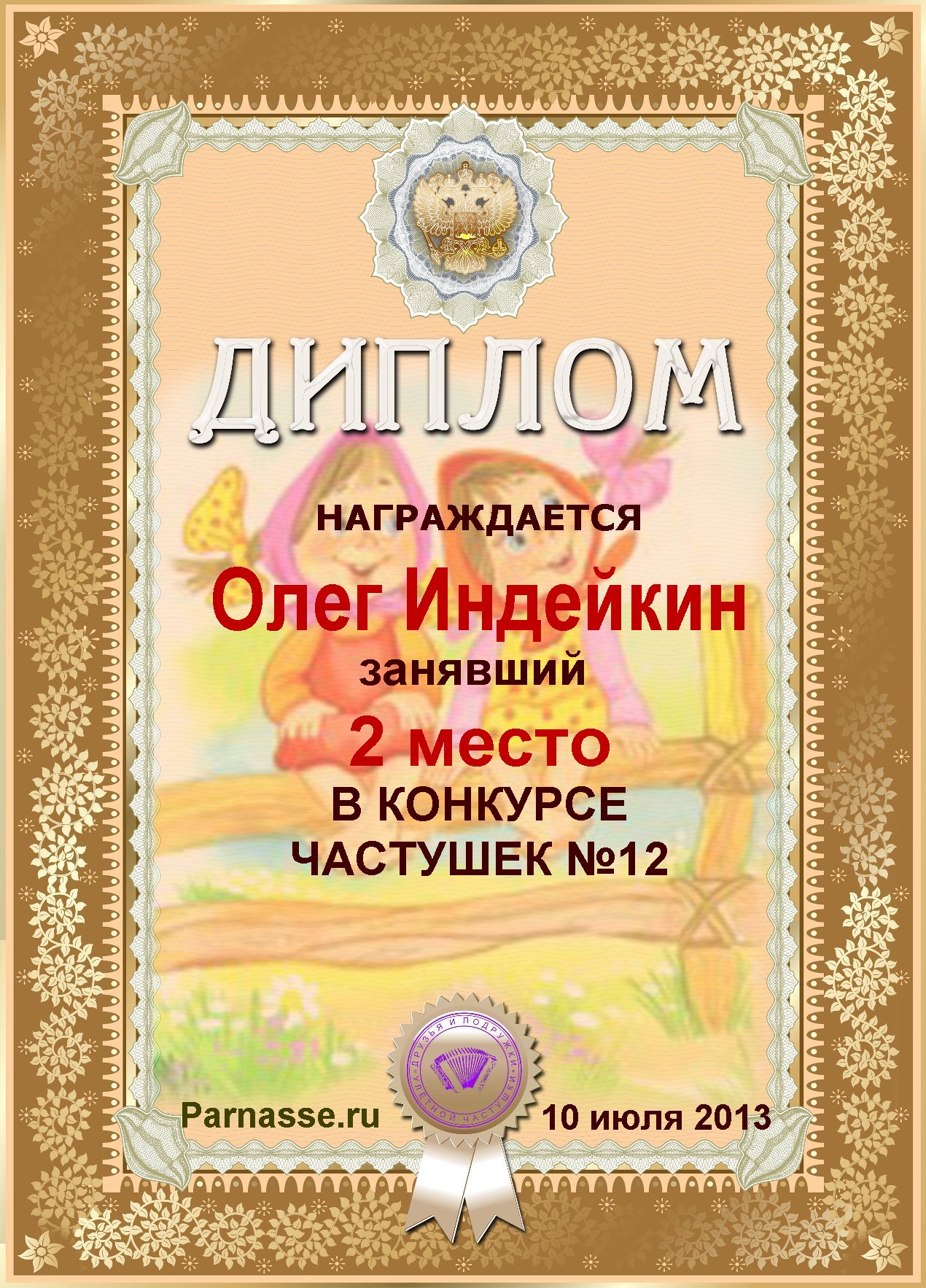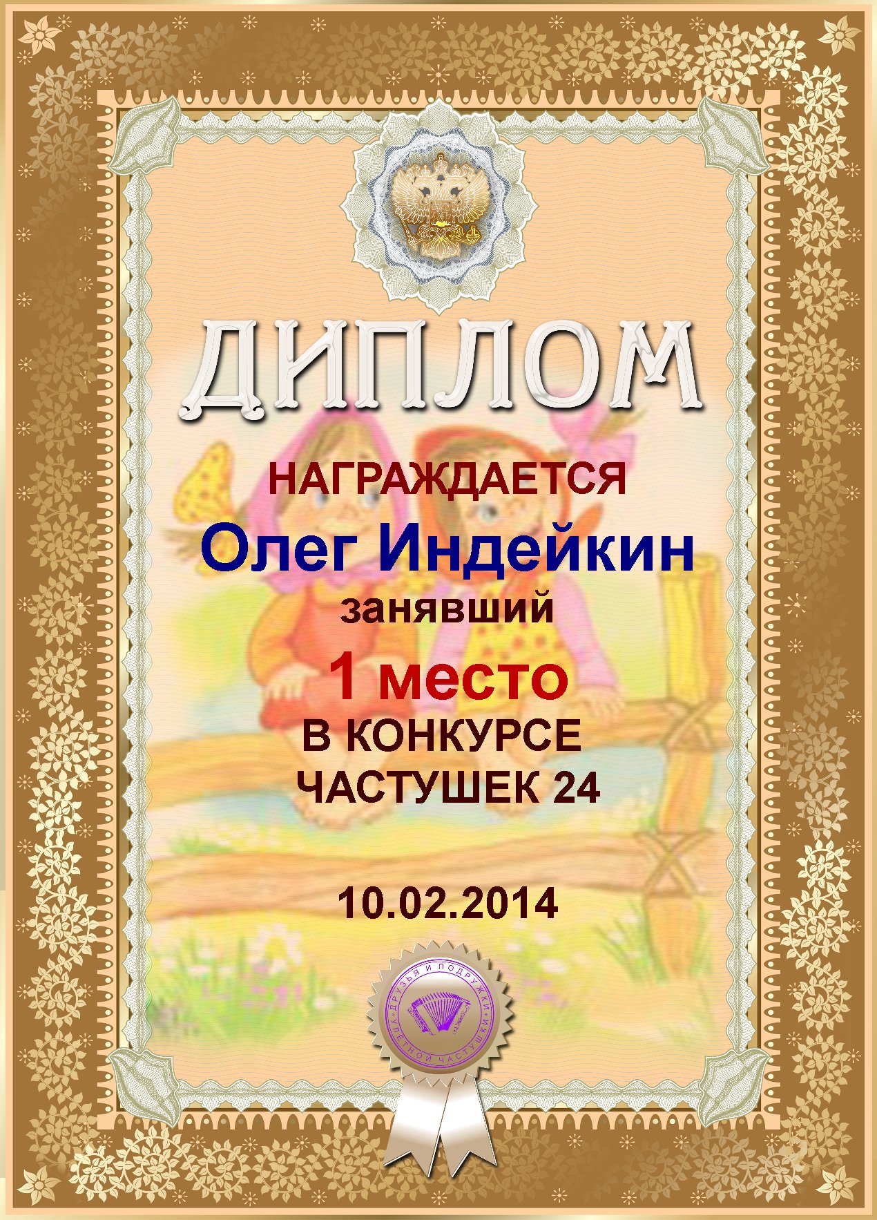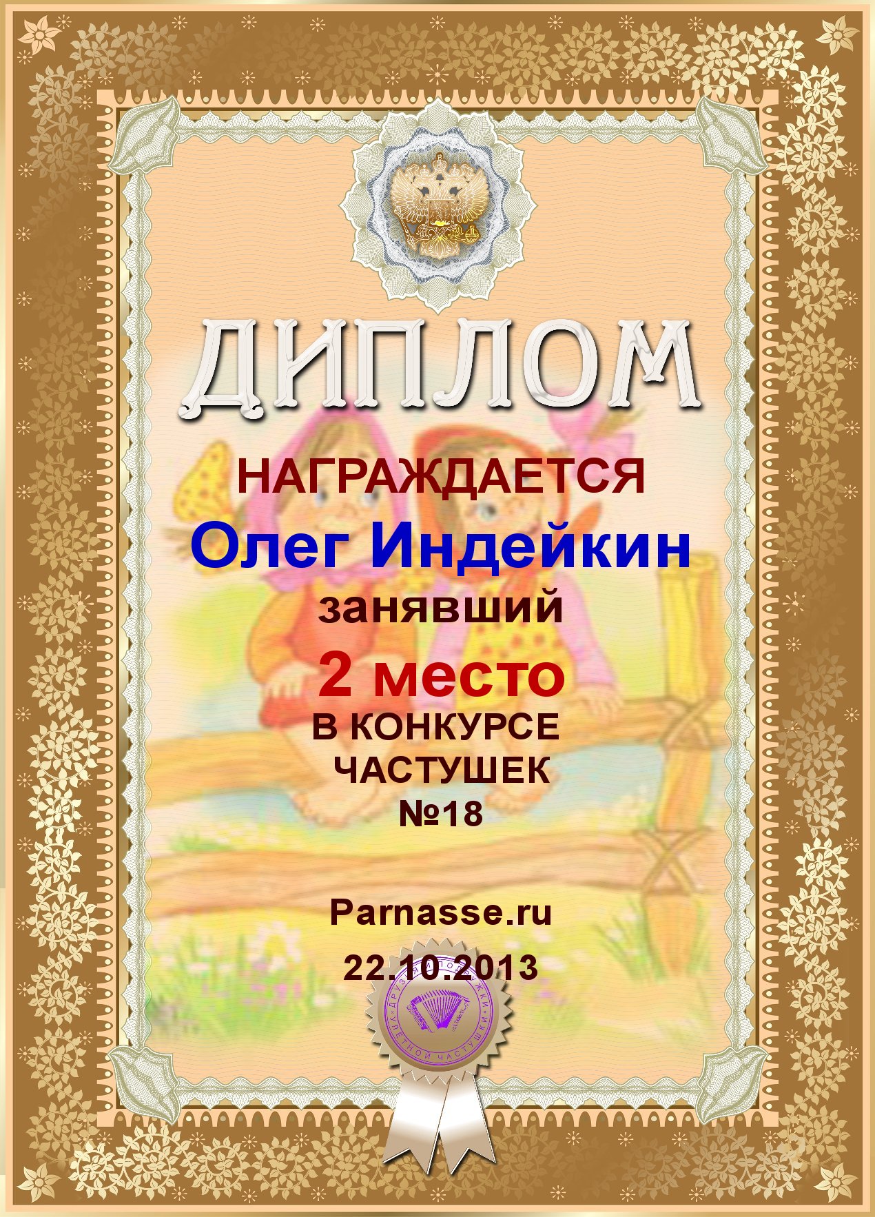 ОЛЕГ, ПОЗДРАВЛЯЮ ВАС С ПОБЕДОЙ В ДОПОЛНИТЕЛЬНОЙ НОМИНАЦИИ КОНКУРСА ЧАСТУШЕК №9++