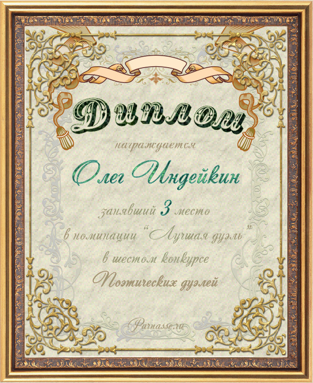 Диплом за третье место в номинации "Лучшая дуэль" в шестом конкурсе поэтических дуэлей (дуэль 11.2)