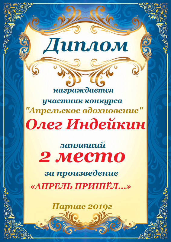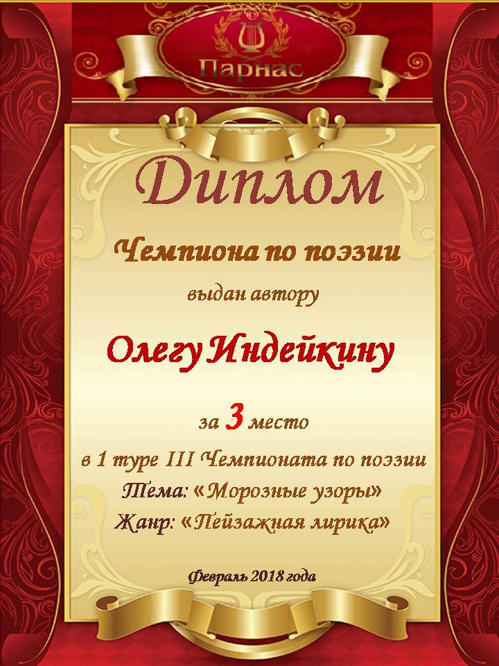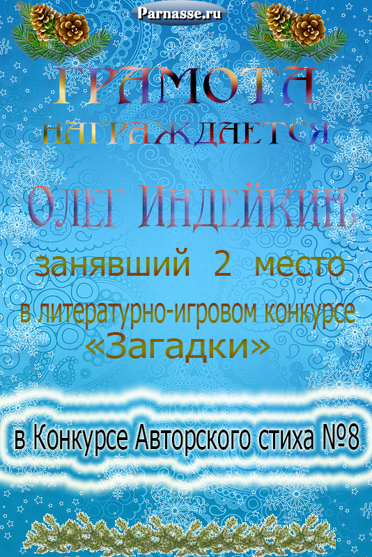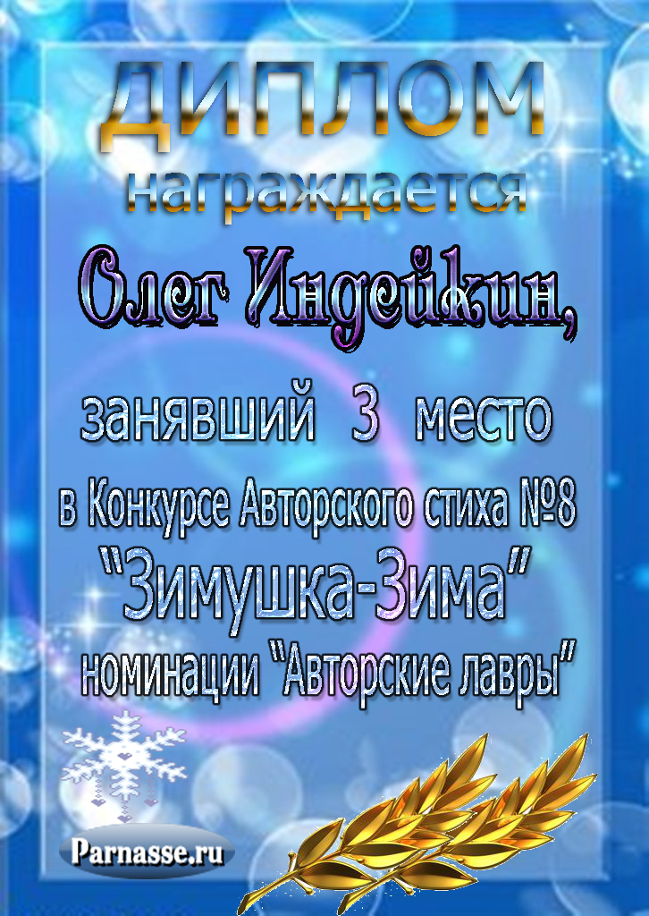 Второе место по итогам серии зимних конкурсов " Белая сказка зимы", в номинации «Поэзия». Поздравляем с прекрасной победой!