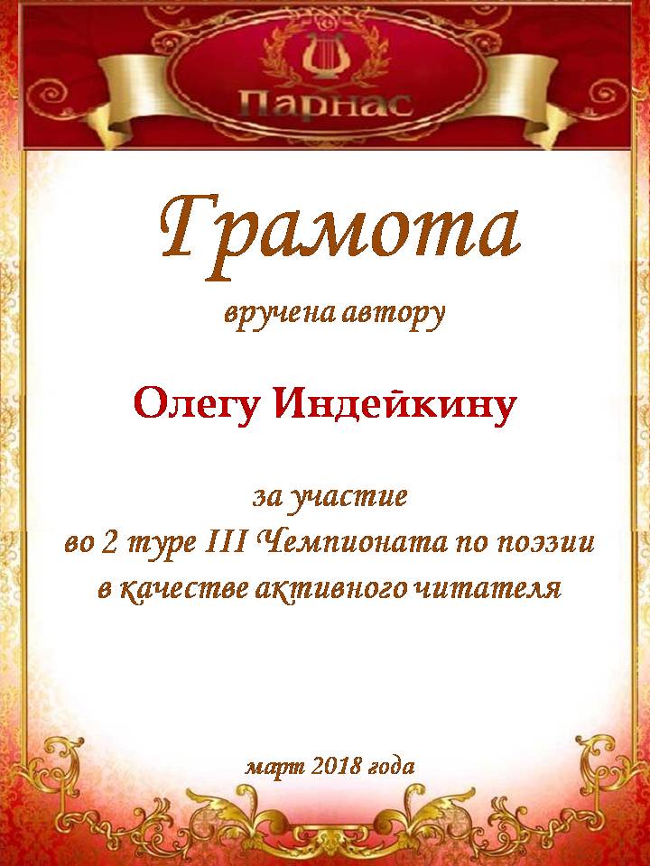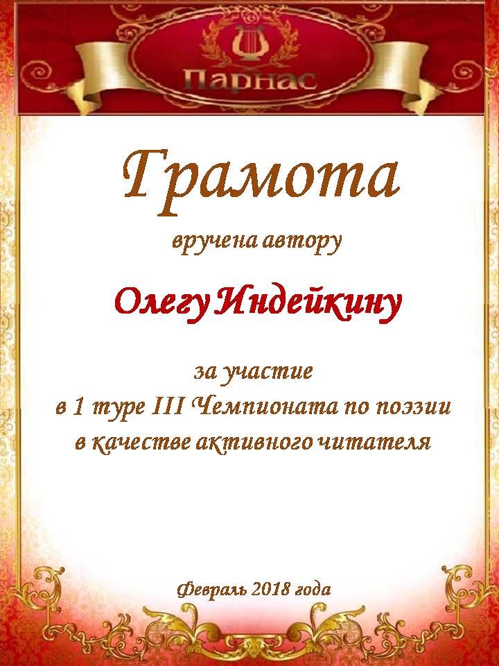 За участие в Третьем Поэтическом Турнире