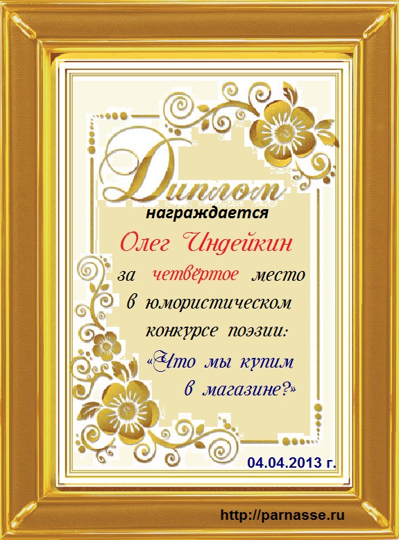 Похвальная грамота за 4 место в конкурсе лимериков № 34+ (8.04.2013 г.)