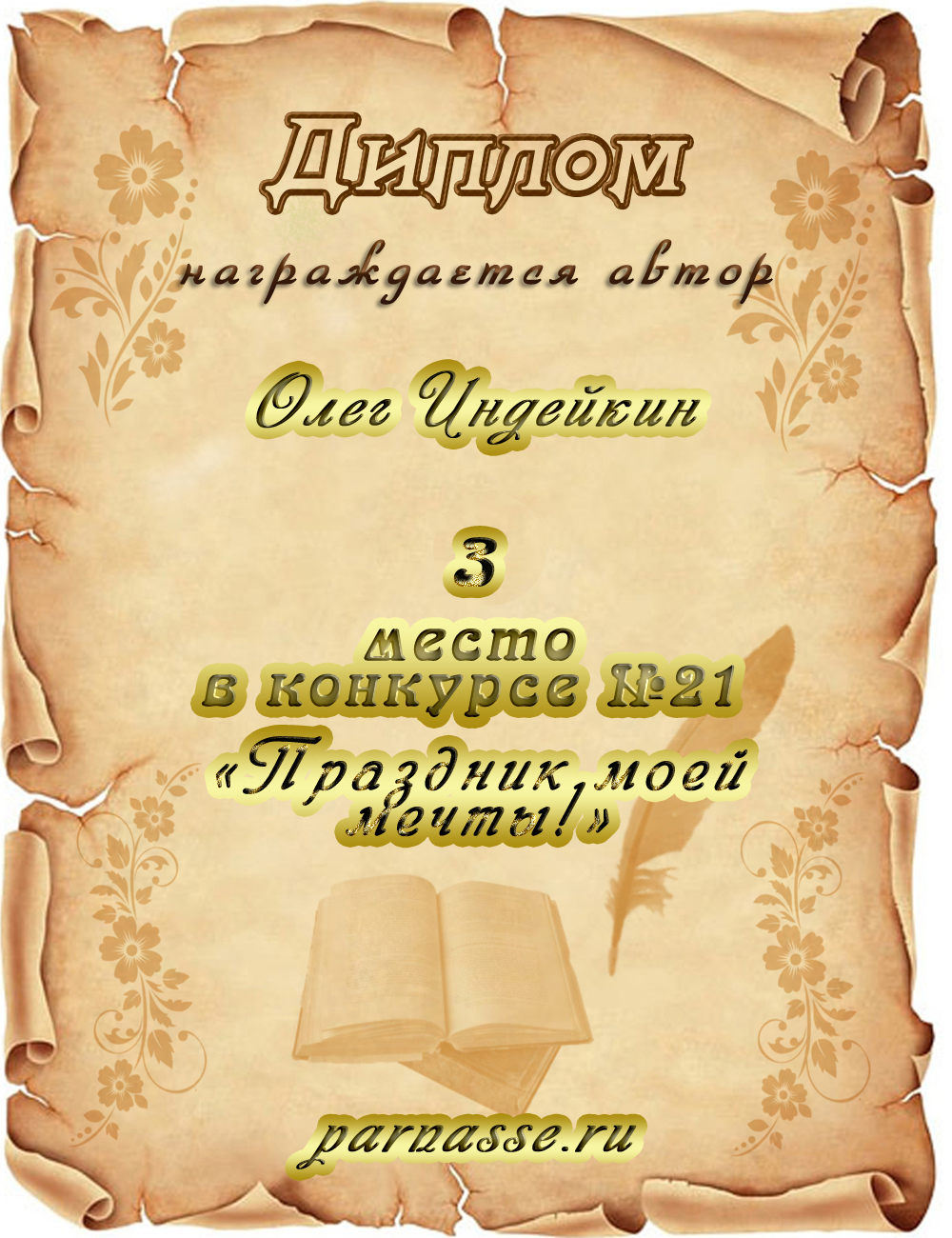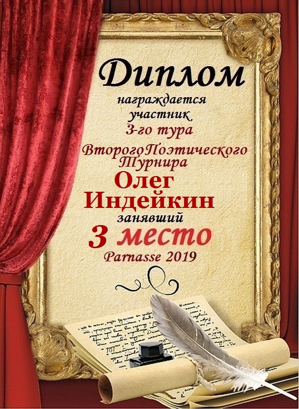 Диплом за третье место в номинации "лучшая дуэль" в пятом конкурсе поэтических дуэлей