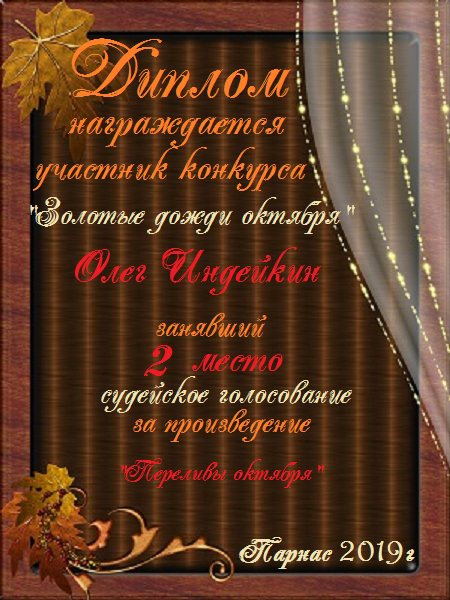 Первое место в судейском голосовании по итогам конкурса - триада "«Листопад с дождём в обнимку кружит»