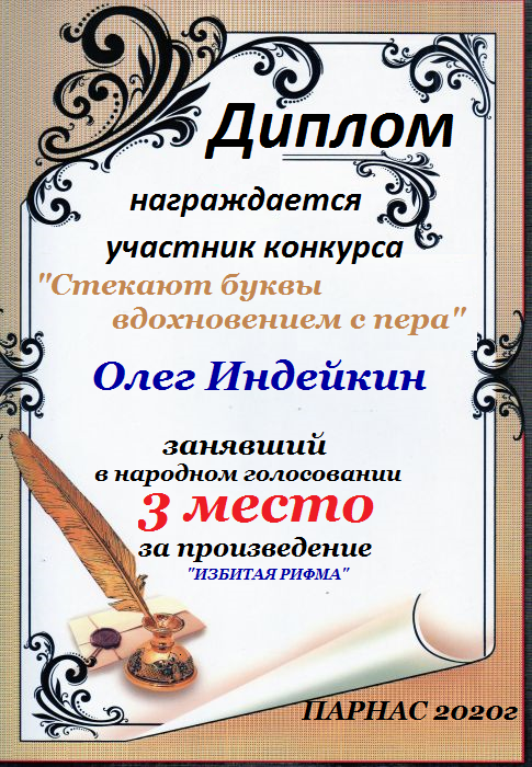 Третье место по итогам конкурса " Вдохновение – росчерк пера", народное голосование. Поздравляем с прекрасной победой!
