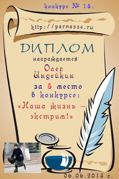 Диплом за 5 место в конкурсе № 15 «Наша жизнь – экстрим!»