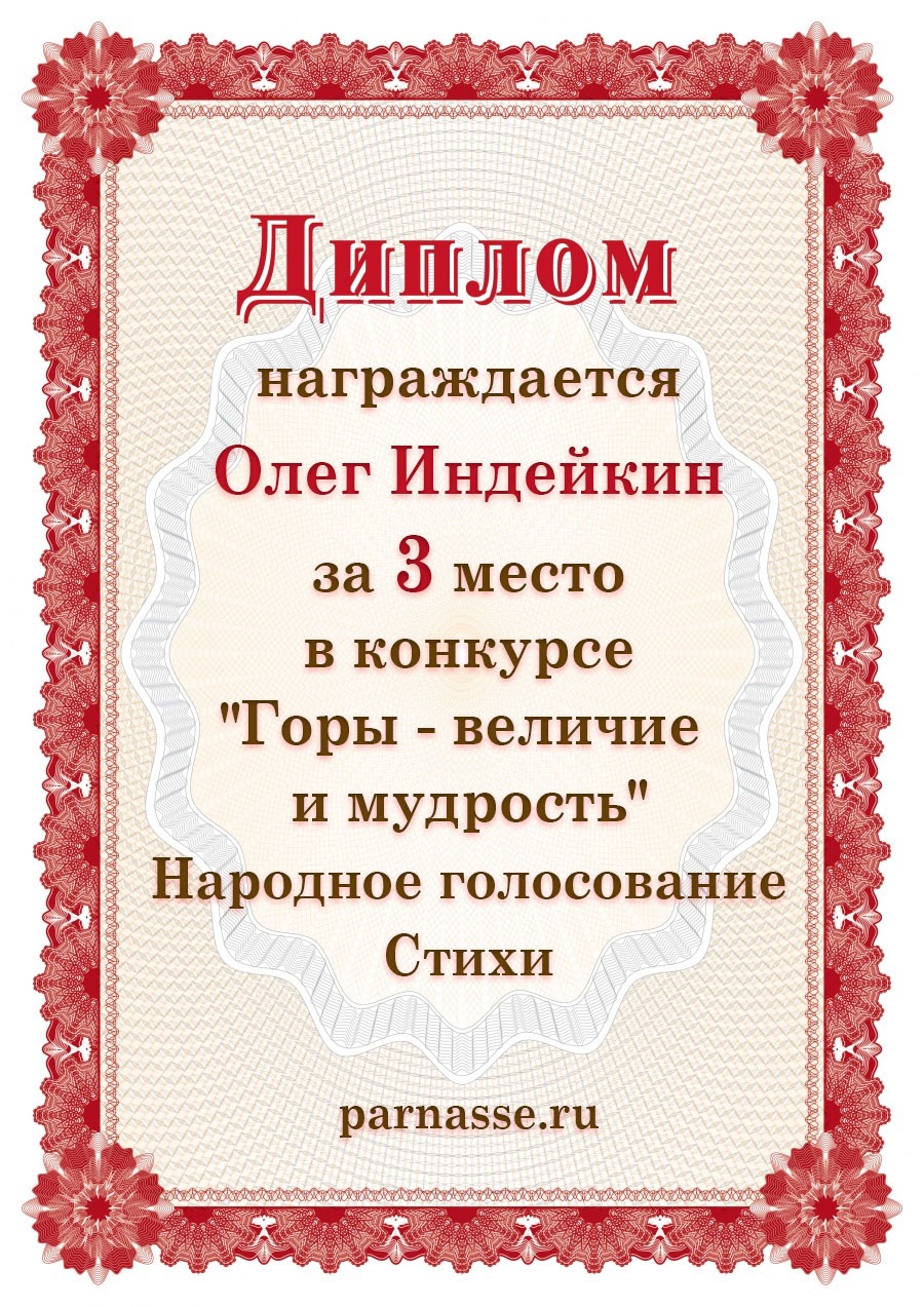 за 3 место в в конкурсе "Горы - величие и мудрость". Народное голосование. Стихи