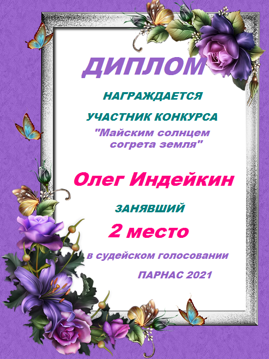Второе место в судейском голосовании по итогам конкурса "Майским солнцем согрета земля"