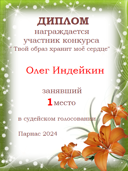Первое место по итогам конкурса "Твой образ хранит моё сердце"