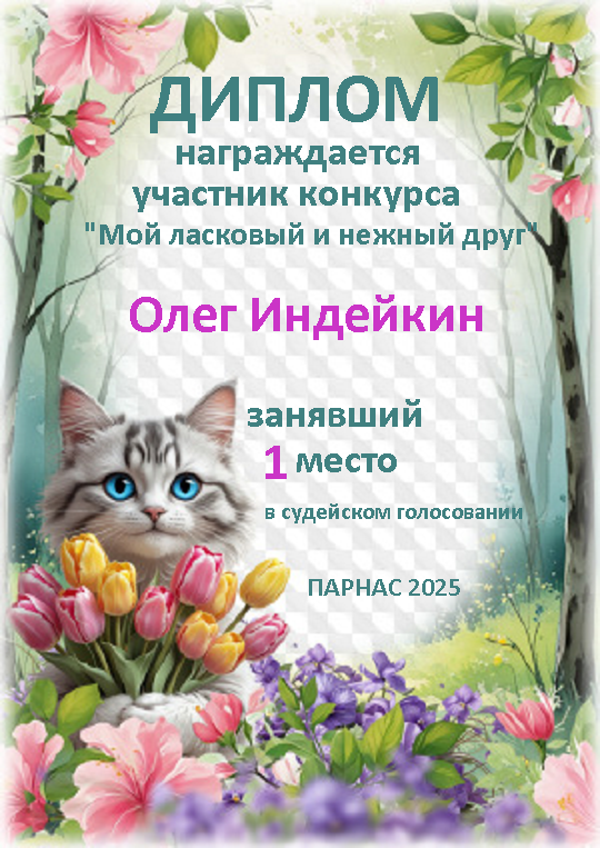 Первое место по итогам конкурса "Мой нежный и ласковый друг"