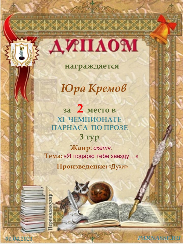 Подарок от: Чемпионат Парнаса по прозе, 4 апреля 2021: