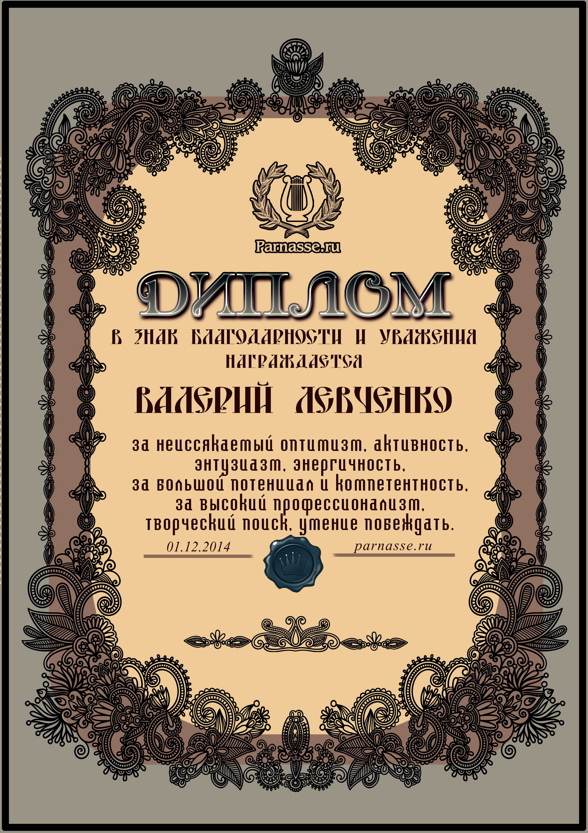 За неугасающую и неисчерпаемую творческую активность, постоянный контакт с Музой и признание сообществом "Парнасцев".