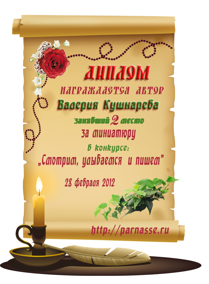 Диплом за 2 место в конкурсе "Смотрим, улыбаемся и пишем"