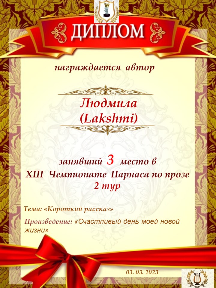 Поздравляю с занятым 3 местом во 2 туре XIII Чемпионата Парнаса по прозе!