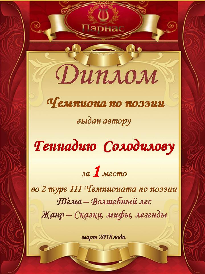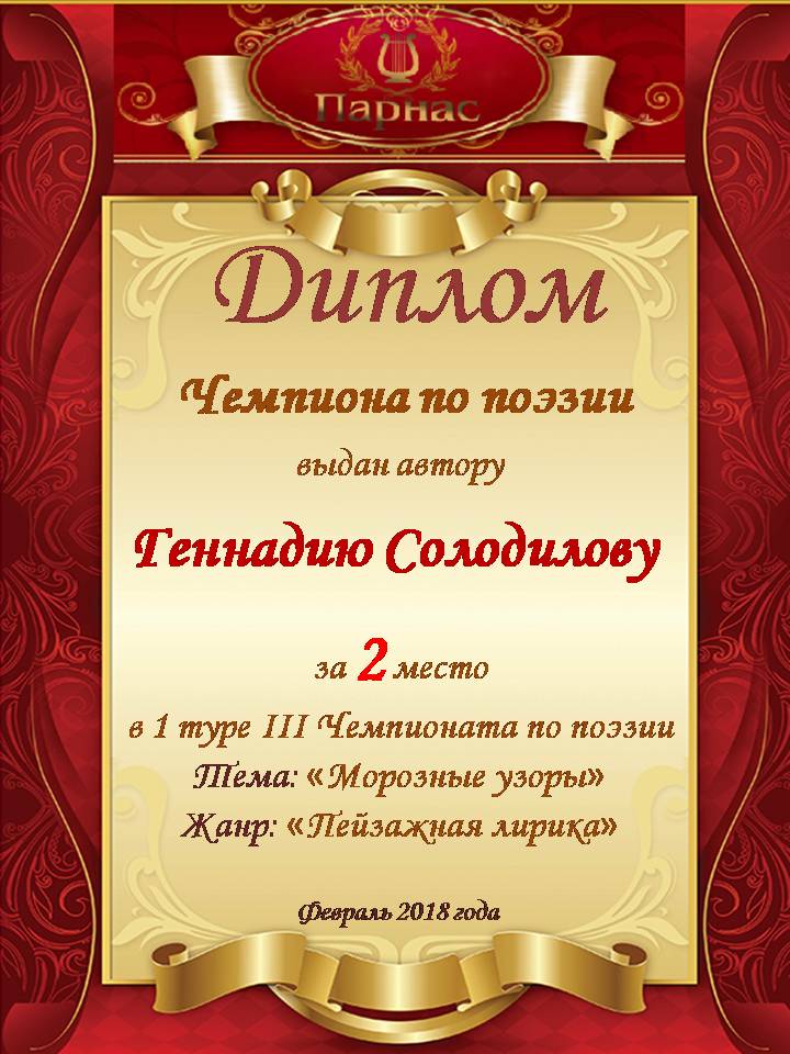 ![]() Серебряная медаль (2 место) Чемпиона по поэзии