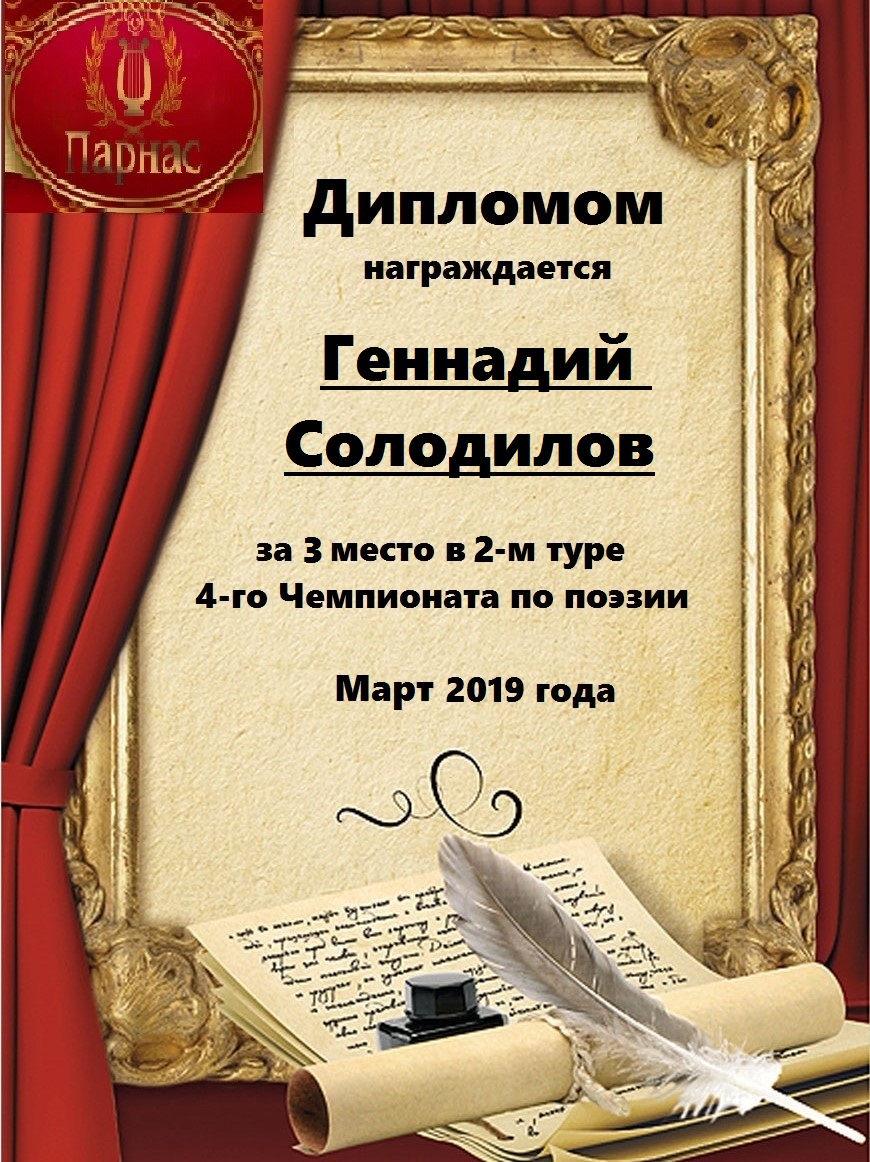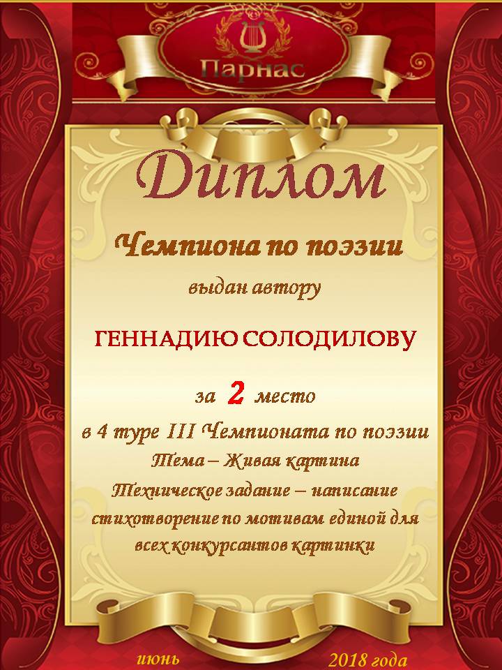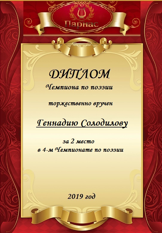 За 2 место в 4 туре Чемпионата по поэзии