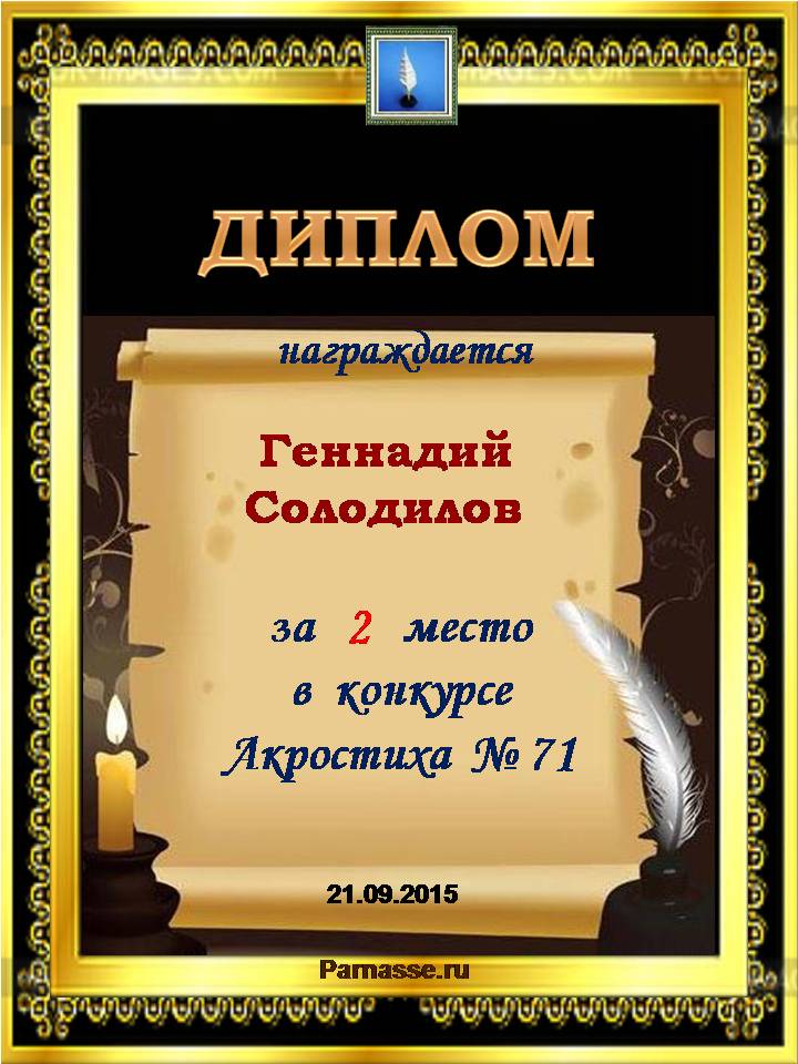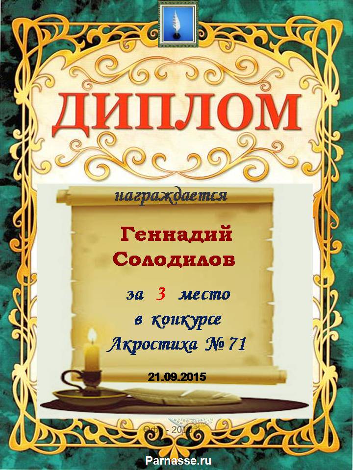 Диплом победителю в конкурсах Акростиха в связи с пятилетием конкурса Акростиха!