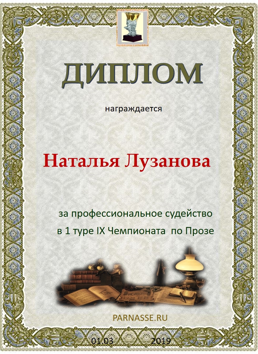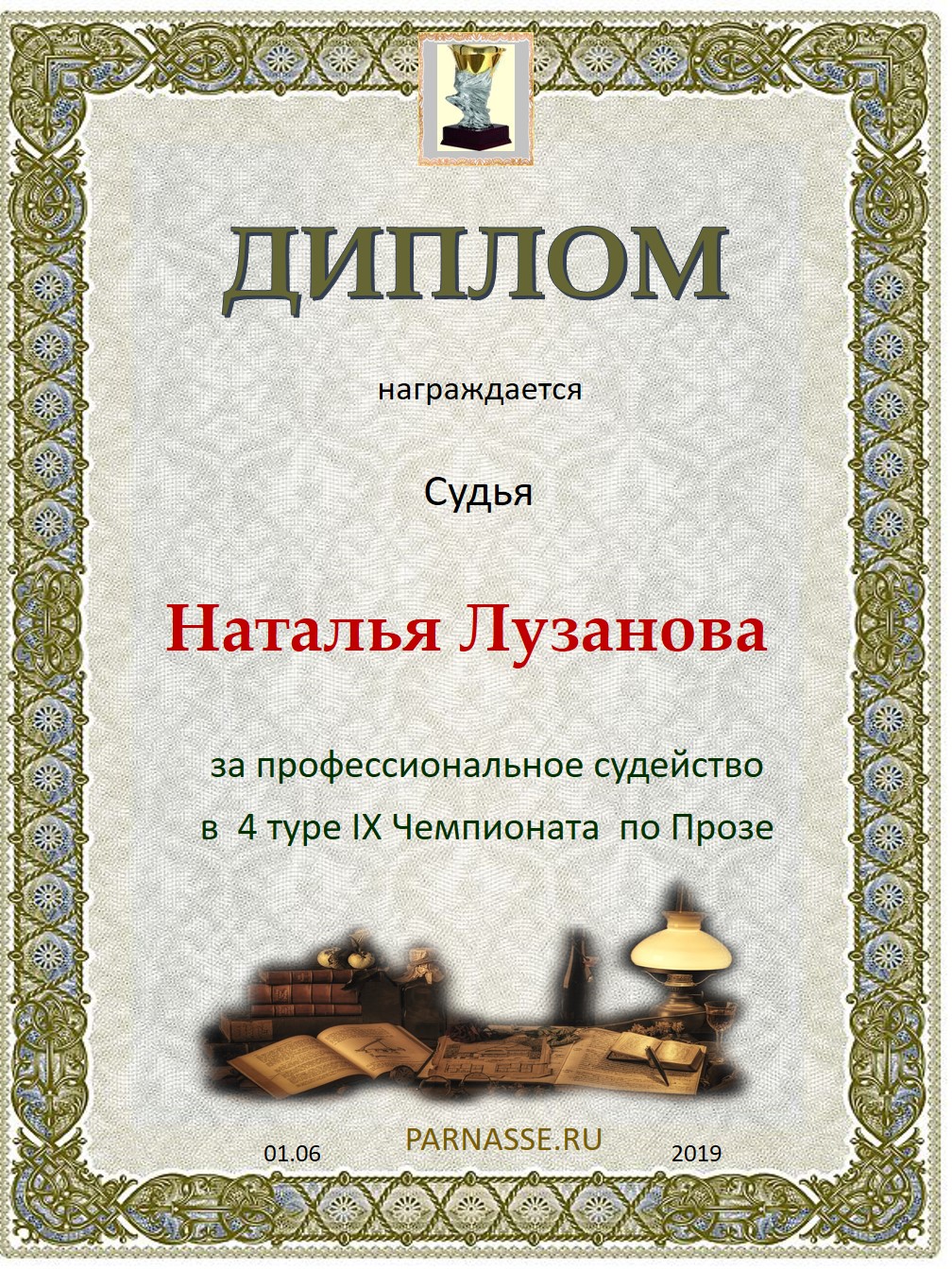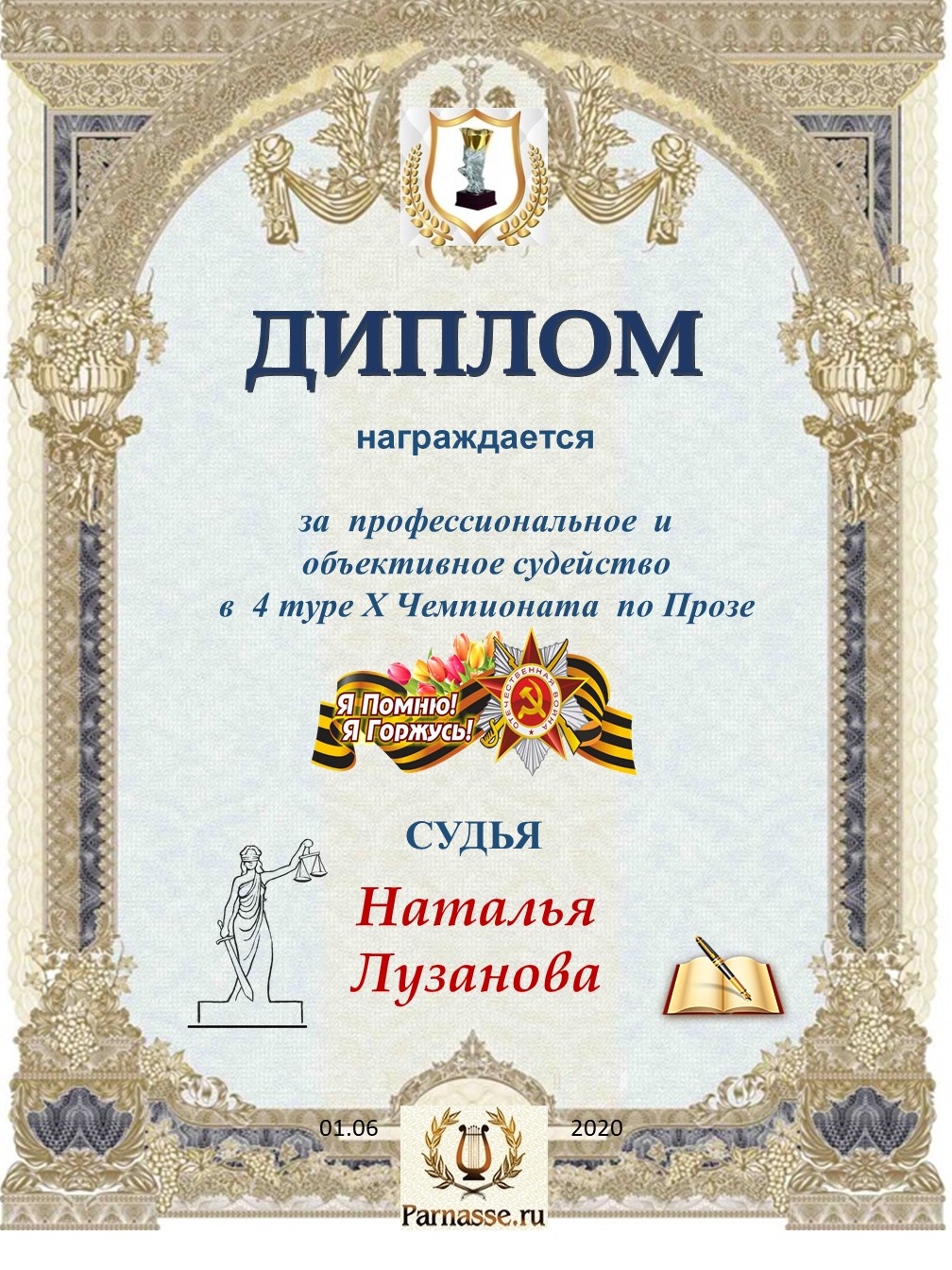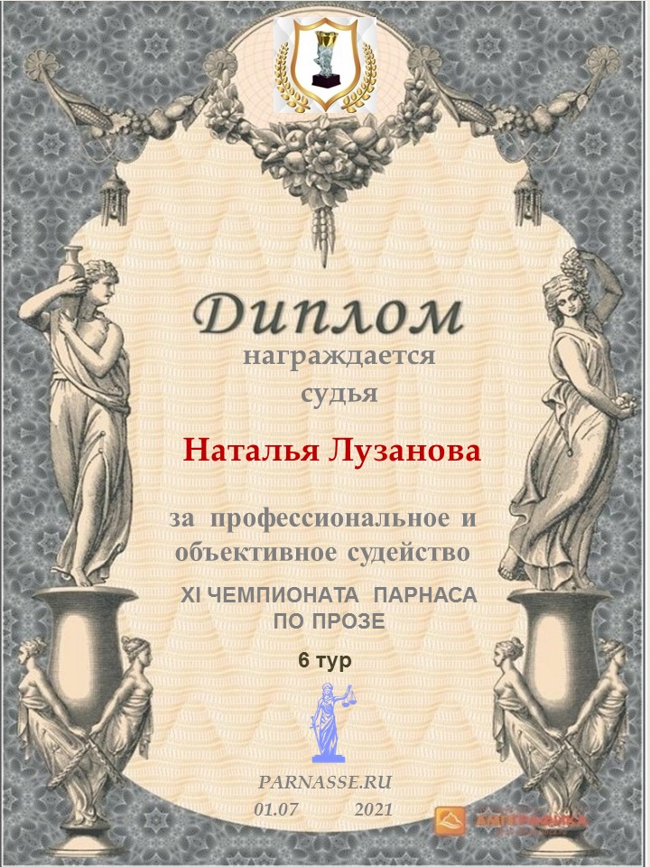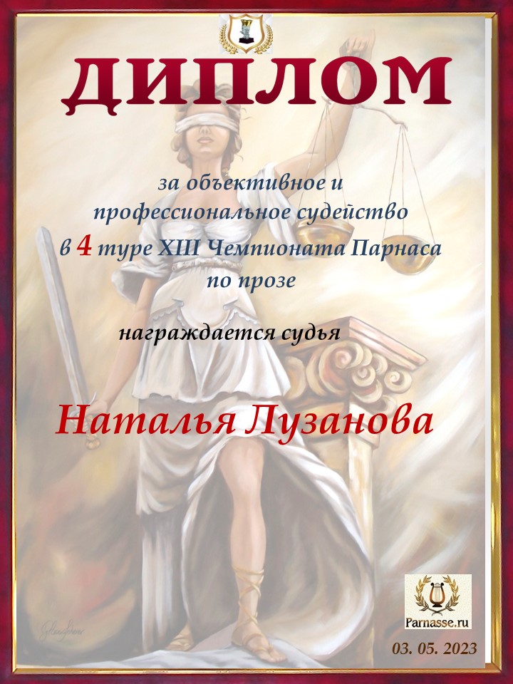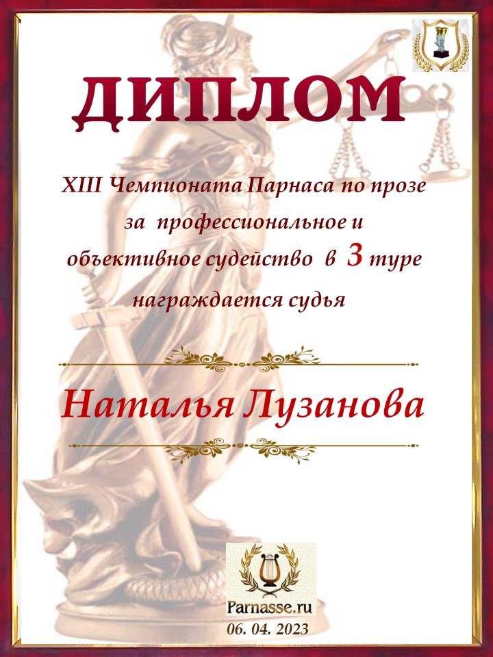 Спасибо за объективное и профессиональное судейство в 3 туре XIII Чемпионате Парнаса по прозе!