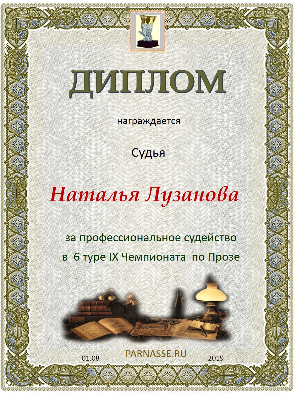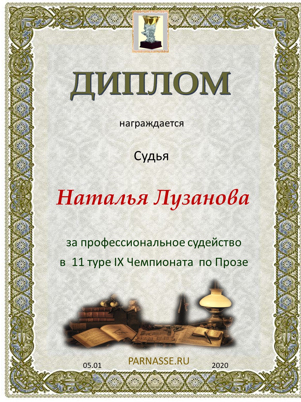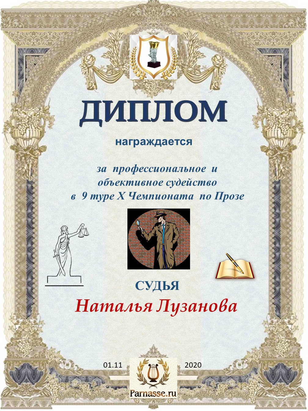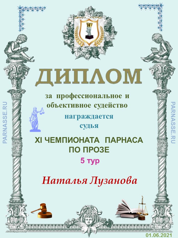 Спасибо за объективное и высокопрофессиональное судейство в 5 туре IX Чемпионата Парнаса по Прозе!