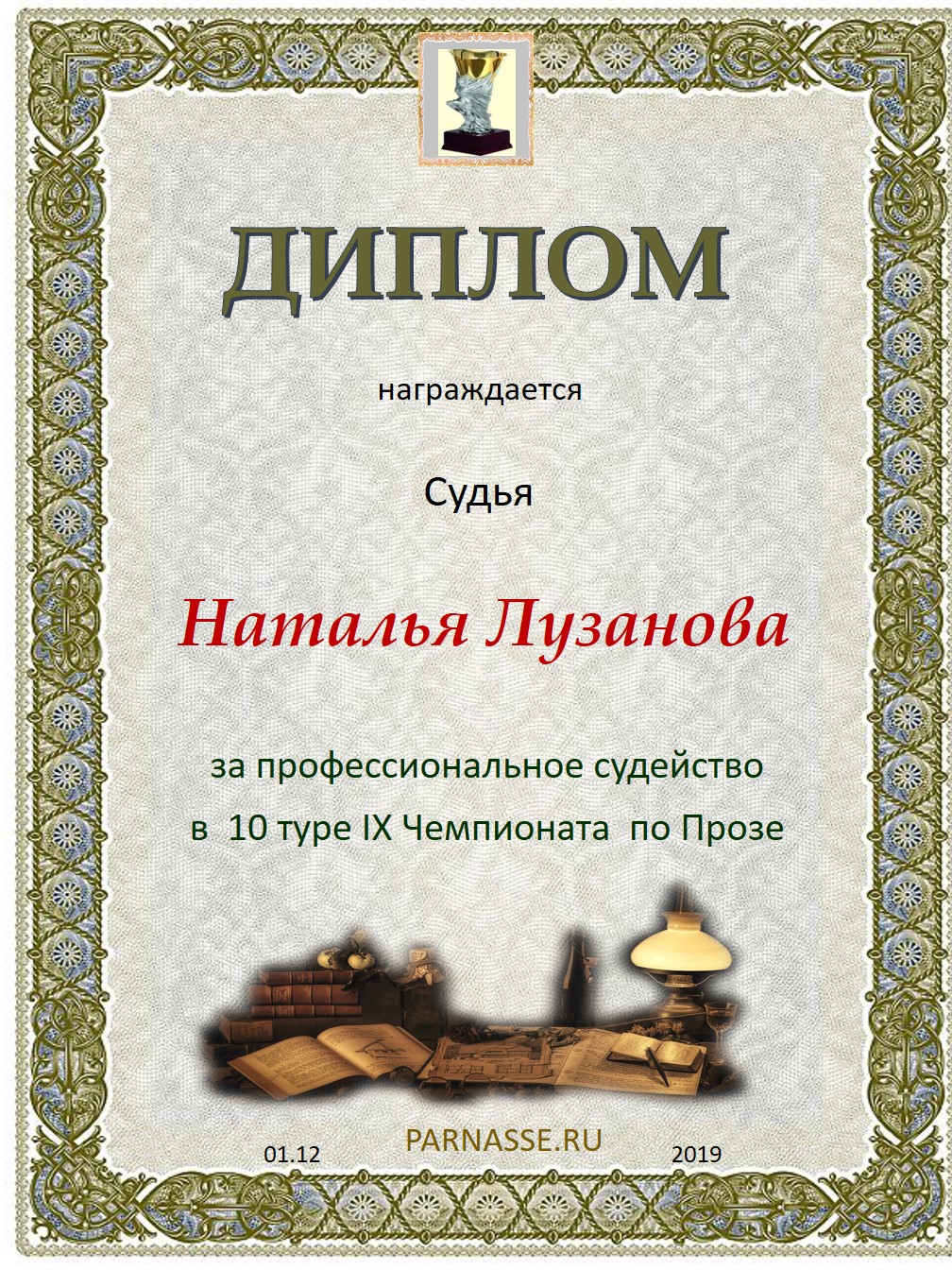 Спасибо за объективное и профессиональное судейство в XII Чемпионате Парнаса по прозе!