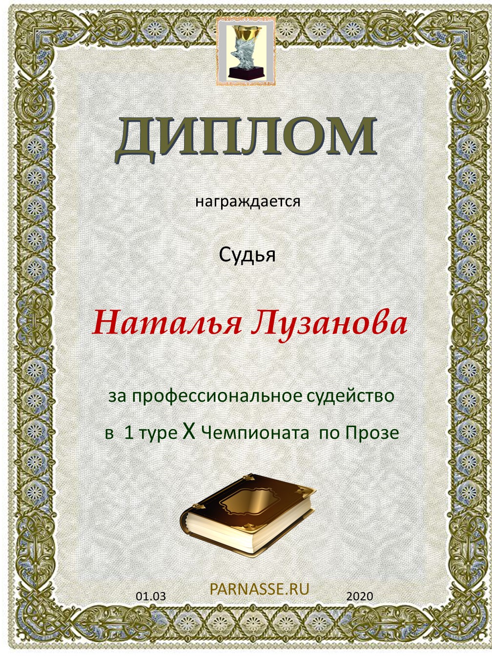 ![]() Золотой орден "Судья Парнаса"