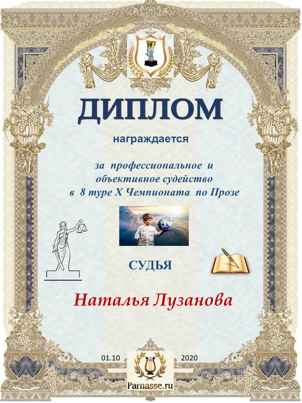 Спасибо за объективное и высокопрофессиональное судейство в 8 туре IX Чемпионата Парнаса по Прозе!