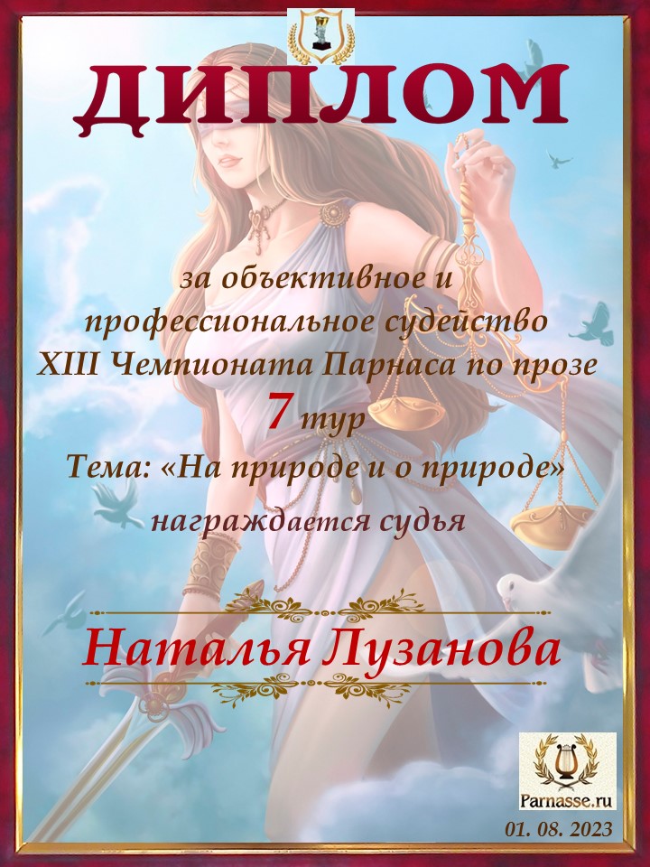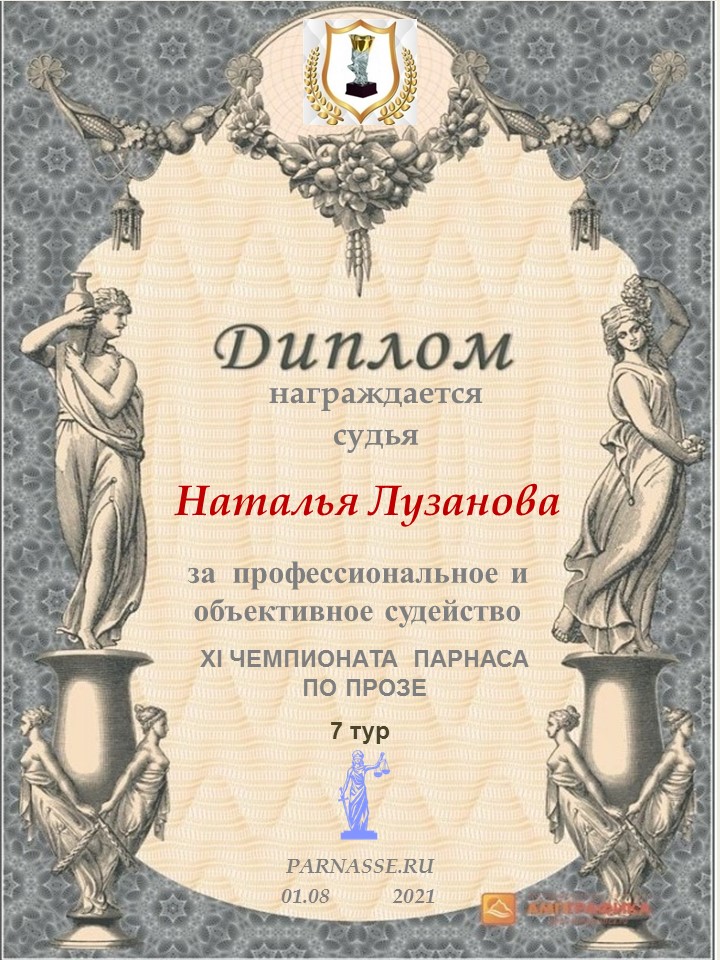 Спасибо за объективное и высокопрофессиональное судейство в 7 туре IX Чемпионата Парнаса по Прозе!