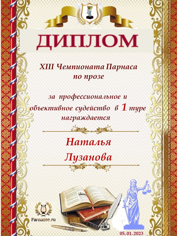 Спасибо за объективное и профессиональное судейство в 1 туре XII Чемпионата Парнаса по прозе!
