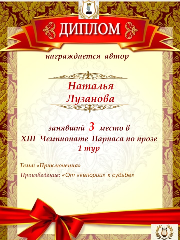 Поздравляю с занятым 3 местом в 1 туре XIII Чемпионата Парнаса по прозе!