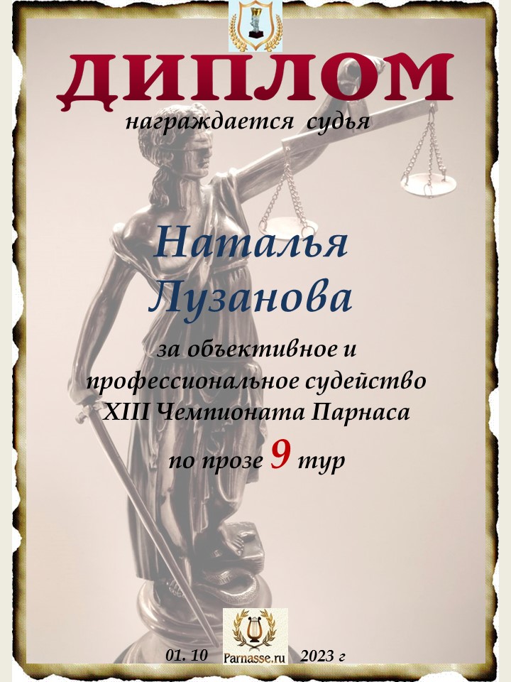 Спасибо за профессиональное и объективное судейство в 9 туре XII Чемпионата Парнаса по прозе!