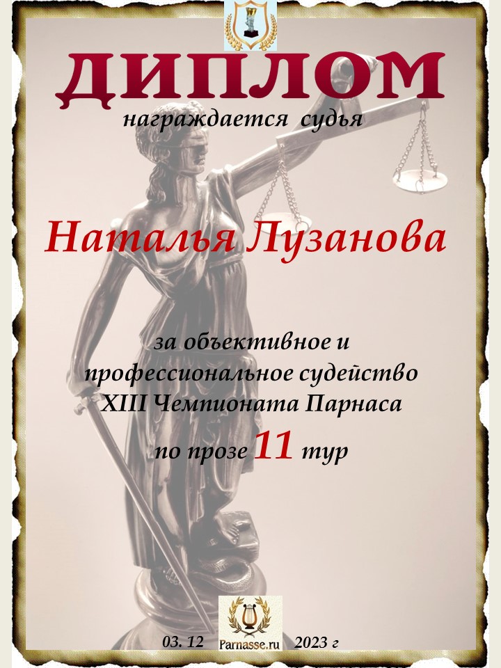 Спасибо за профессиональное и объективное судейство в 11 туре IX Чемпионата Парнаса по Прозе!