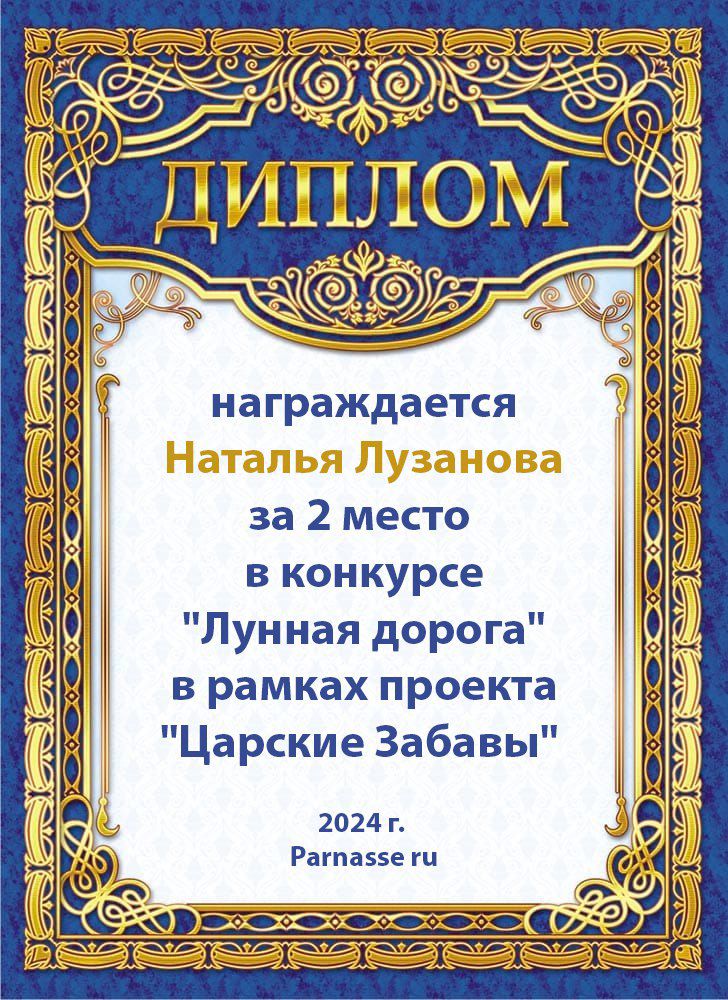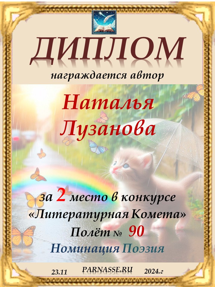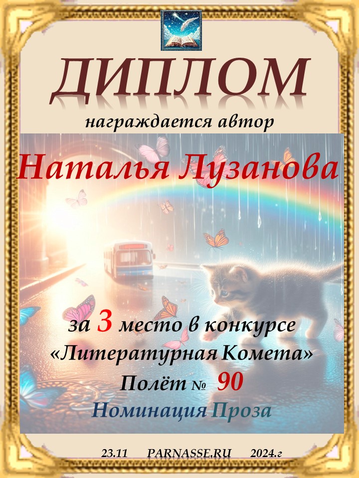 Медаль от ведущей конкурса "Философия ноября" за поэтический талант в раскрытии темы стихотворения!