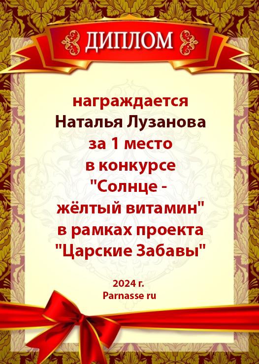Первое место по итогам конкурса "Море, солнце и любовь"
