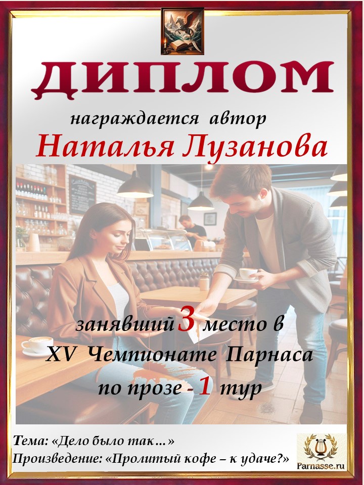 Поздравляю с занятым 3 местом в 8 туре XII Чемпионата Парнаса по прозе!