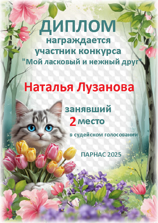 Второе место по итогам конкурса "Мой нежный и ласковый друг"