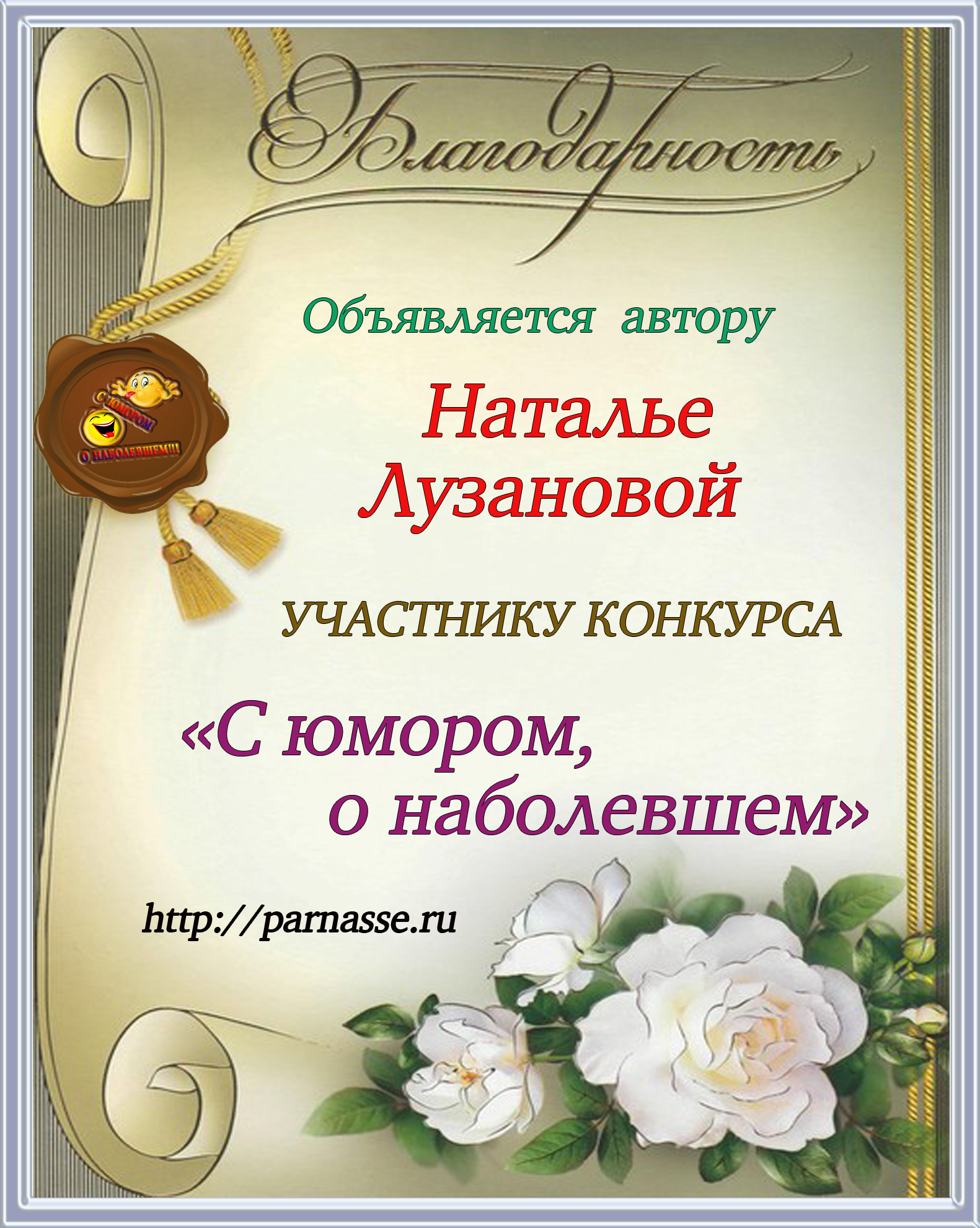 За компетентное, квалифицированное,справедливое судейство литературных конкурсов.