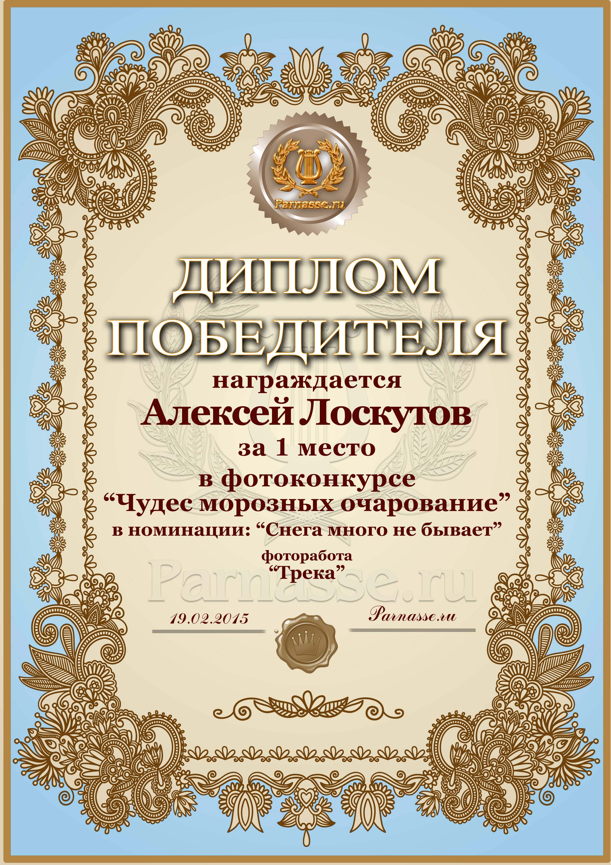 Диплом за 1 место в фотоконкурсе "Чудес морозных очарование"