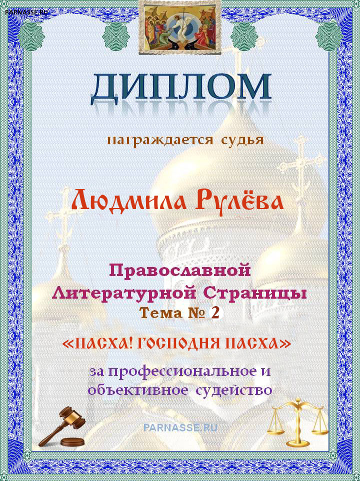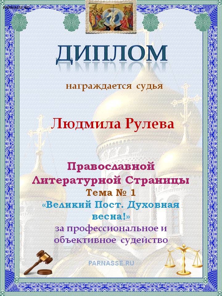 Диплом за объективное и профессиональное судейство на Православной ЛитСтранице.