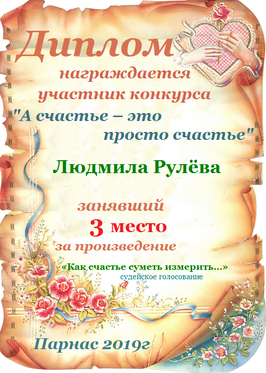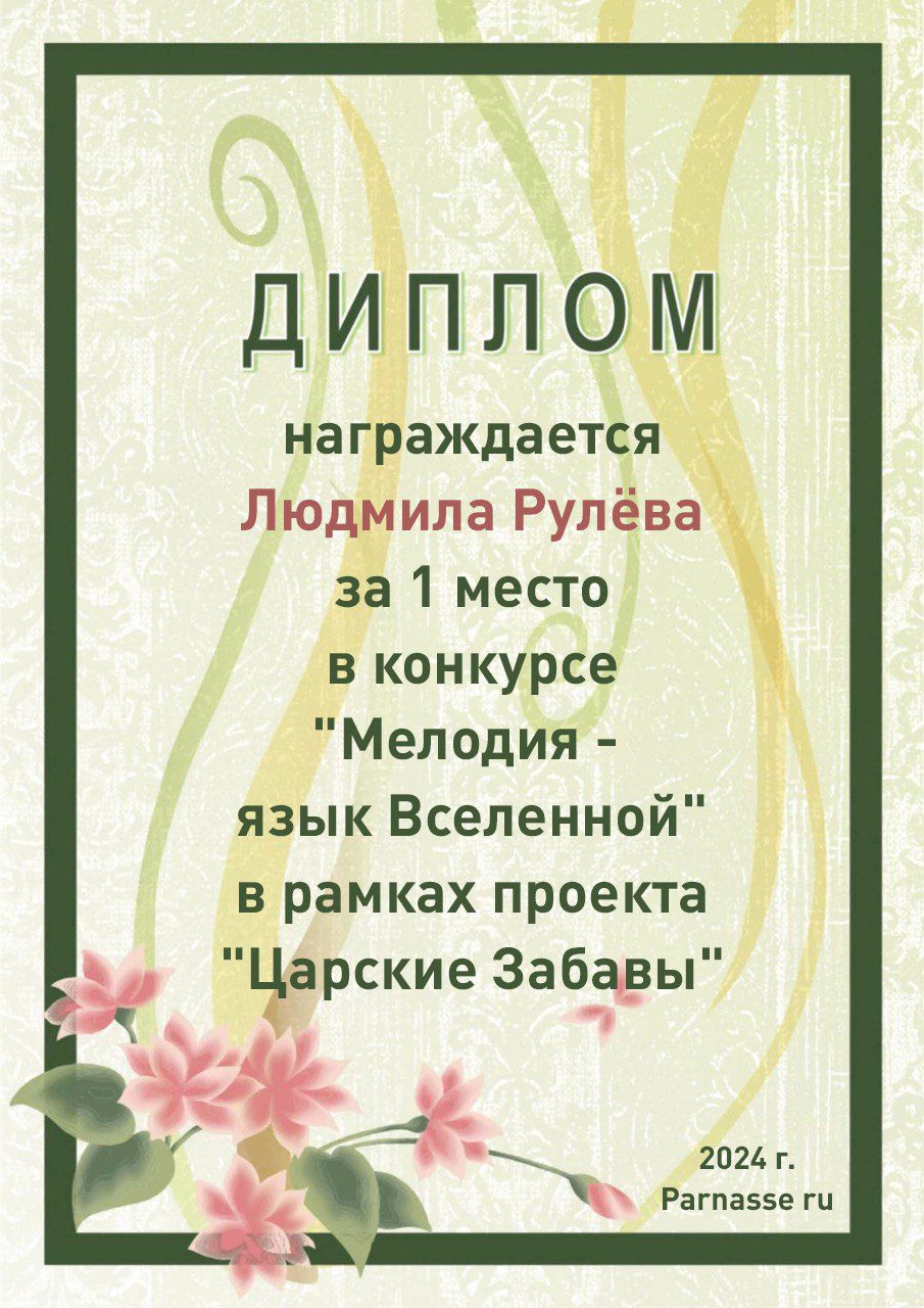1 место в конкурсе "Поэзия чувств". Поздравляем!