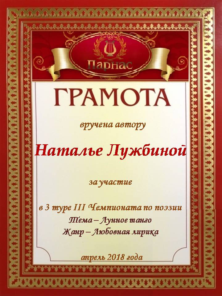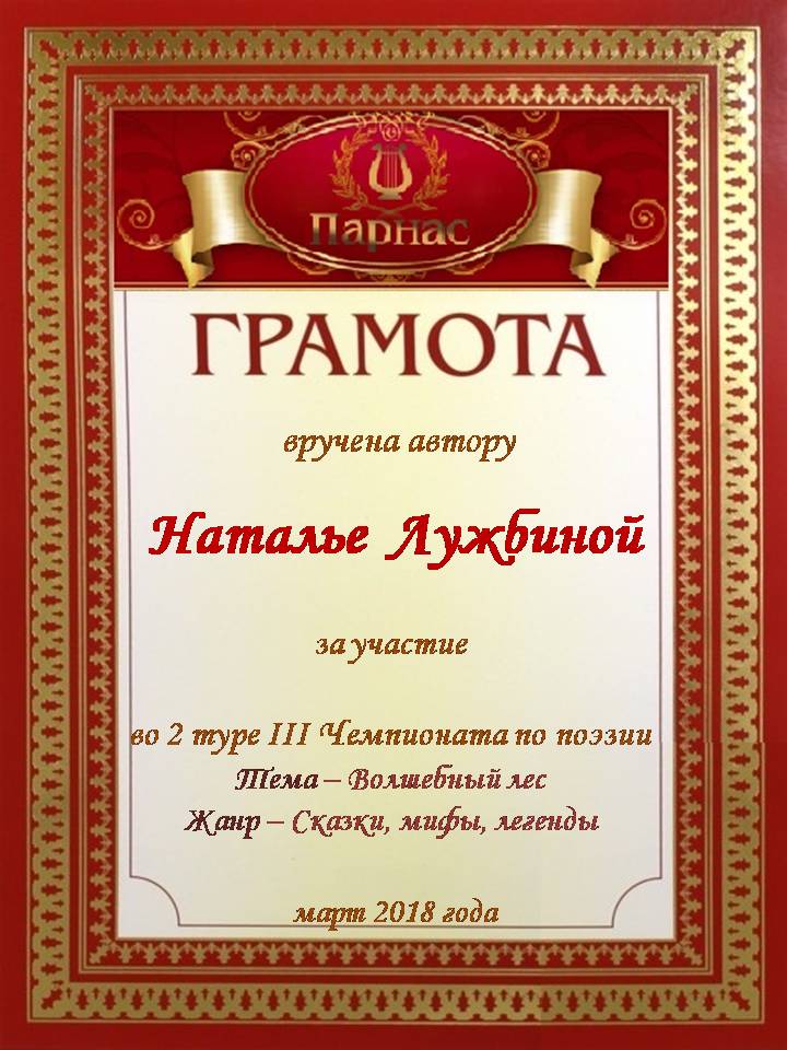 Грамота за 4 место в 103 конкурсе АКРОСТИХА!