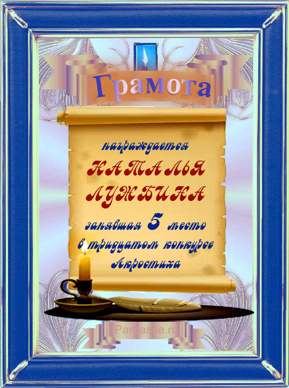 Грамота за 5 место в 30 конкурсе АКРОСТИХА!