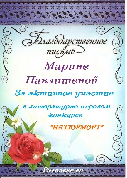 Дорогая Марина! Выражаем Вам огромную благодарность за оказанную помощь Парнасу. Спасибо огромное за Вашу чуткость и понимание! Мы желаем Вам всего самого наилучшего, светлого и доброго! Пусть ваша доброта вам вернется в жизни во много крат!