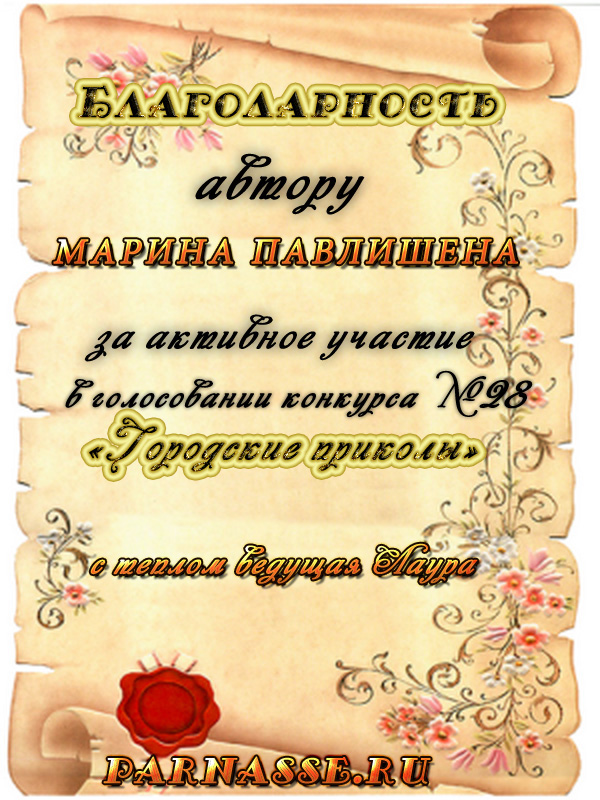 Похвальная грамота за 4 место и активное участие в конкурсе лимериков № 69+ (25.05.2015 г.)